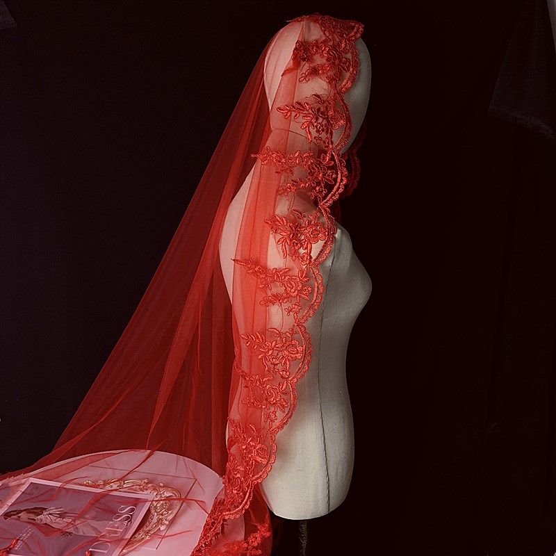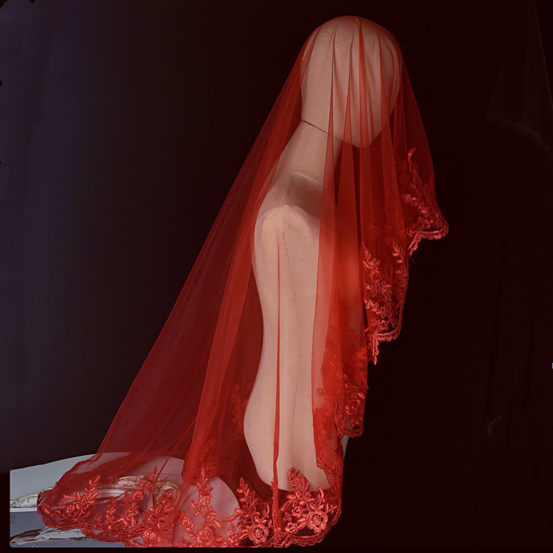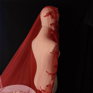 红色头纱新娘红盖头结婚纱复古风中式 秀禾汉服半透明网纱蒙头拍照
