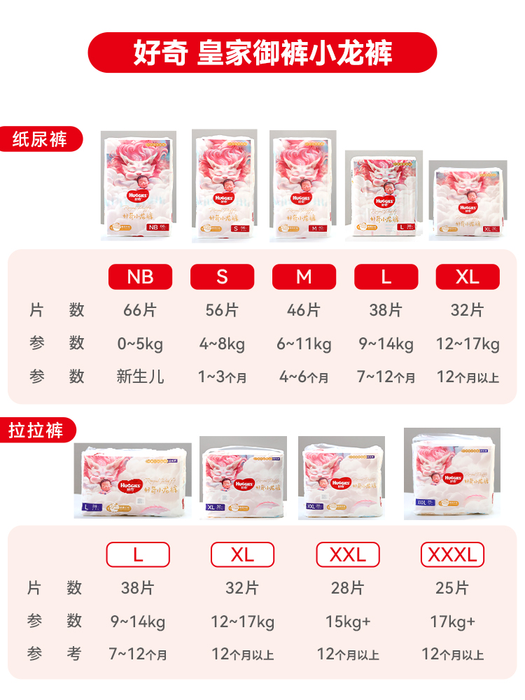 纸尿裤 XXXL皇家御裤 sml超薄透气婴儿麒麟尿不湿 拉拉裤 好奇小龙裤