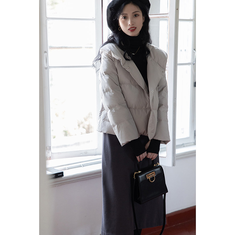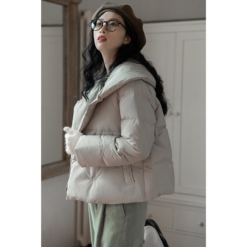 恩W德贵货 廓形小众设计宽松白鸭绒外套女冬 日本轻型羽绒服短款