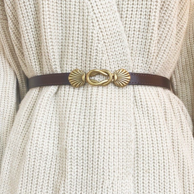 2024新细腰带女士装 大衣纯牛皮腰链皮带配裙子收腰真皮腰封 饰西装