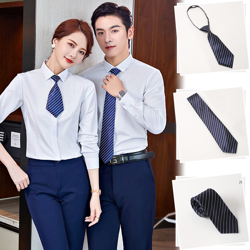 百搭商务领带条纹男女西装 金融地产 领结银行上班领花免手打拉链款
