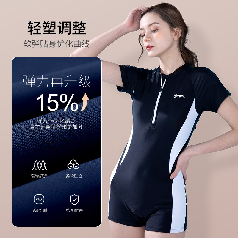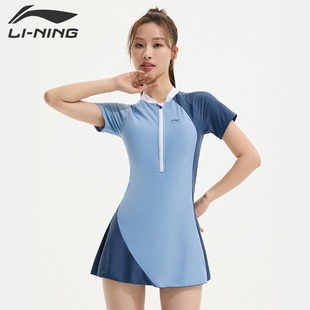 李宁游泳衣女士2025新款 高级感温泉连体平角显瘦官方游泳馆专业用