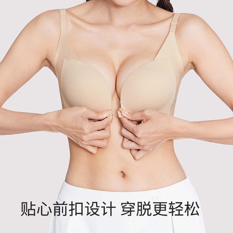 幸棉内衣女小胸聚拢U背前扣美背无痕文胸d 金姐专享
