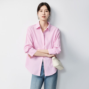 100棉|罗蒙春秋女士长袖 竖条纹休闲百搭宽松衬衣女上衣外套 衬衫