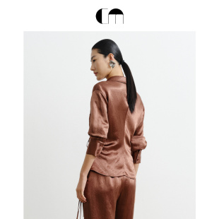 MOI吕燕设计师早春女收腰显瘦醋酸系带衬衫 COMME 秀场同款