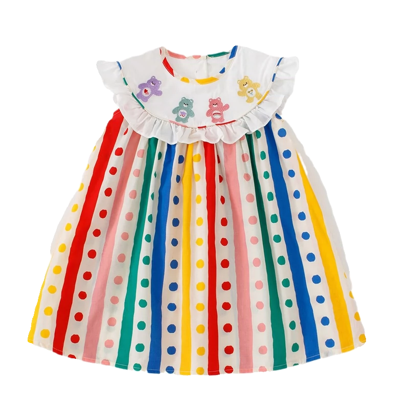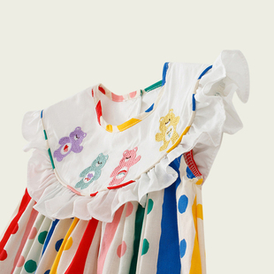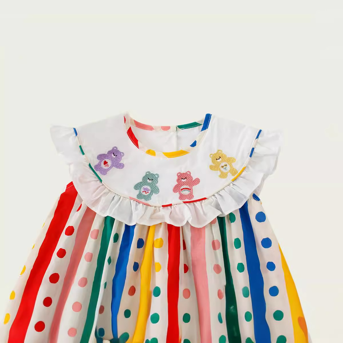 公主裙 无袖 女童小熊刺绣短袖 连衣裙宝宝彩虹条纹波点裙子儿童夏装