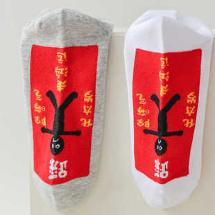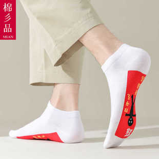 红袜子脚踏七星本命年短袜纯棉脚踩大红色男女纯棉夏季 船袜潮 薄款