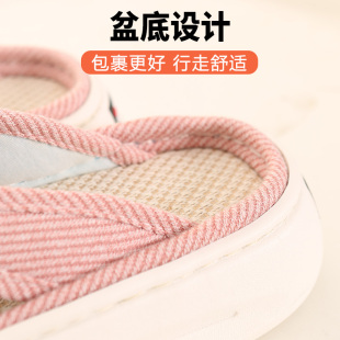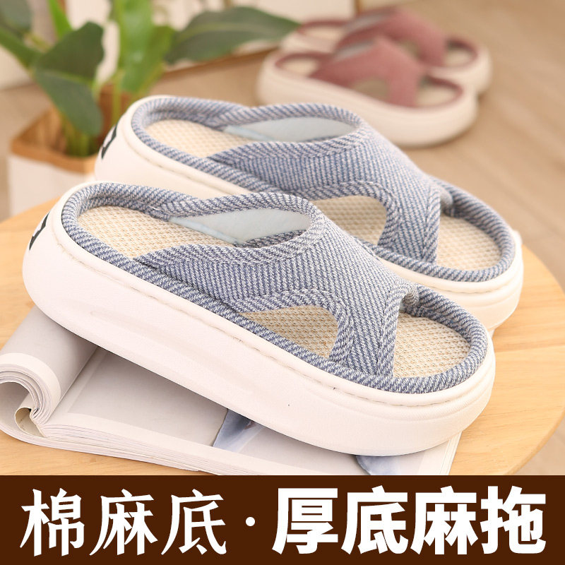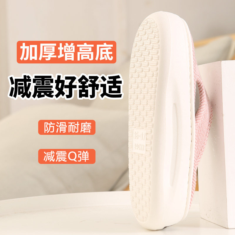 踩屎感女士外穿凉鞋 吸汗透气亚麻松糕厚底凉拖鞋 加厚增高底