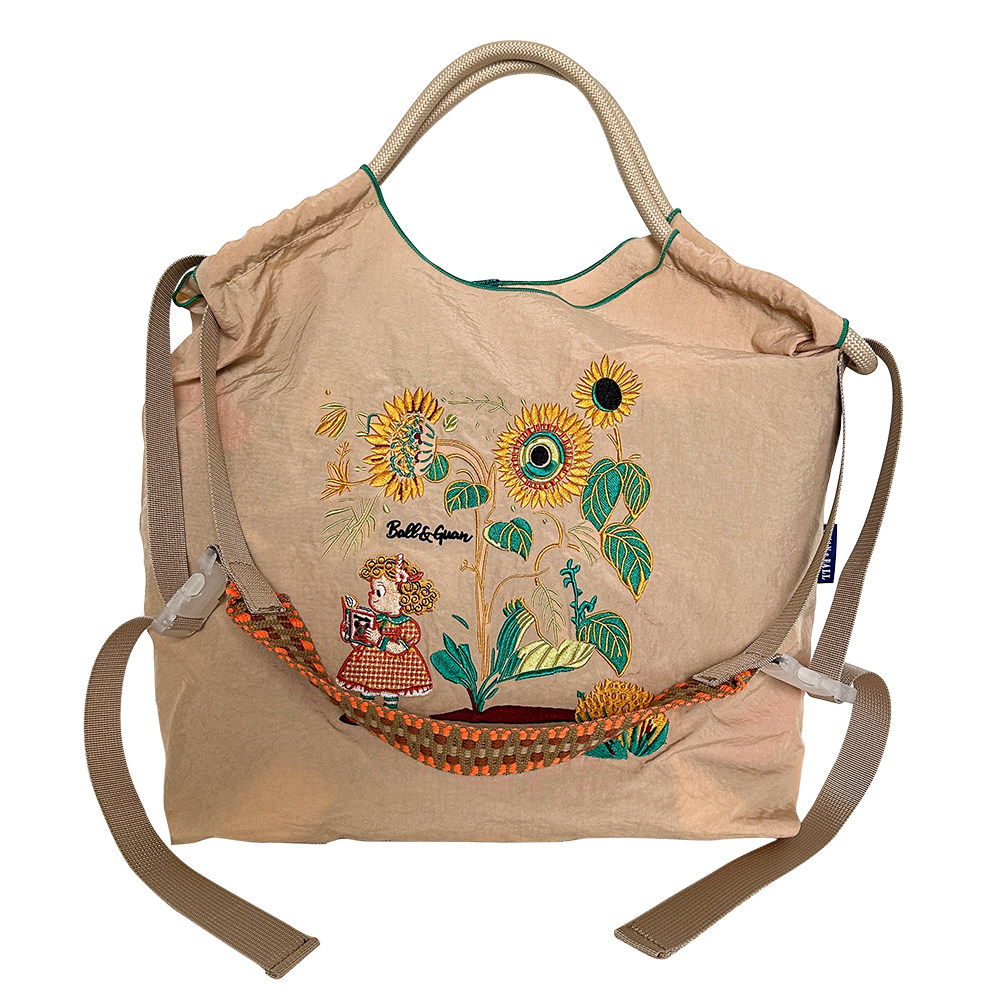 刺绣日韩斜挎guan ball包通勤小众大容量单肩购物袋女尼龙旅行袋