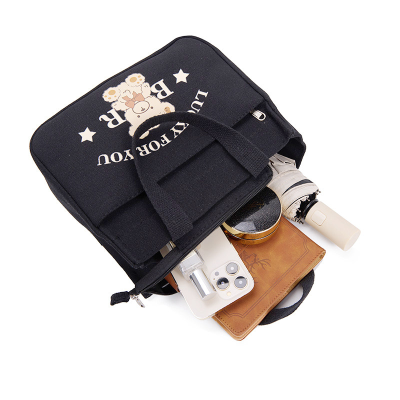布娘娘加厚帆布手提包耐磨耐脏上班专用布包卡通印花饭盒袋时尚 女