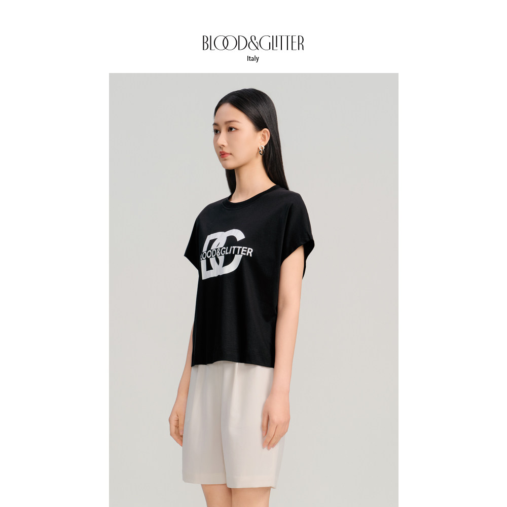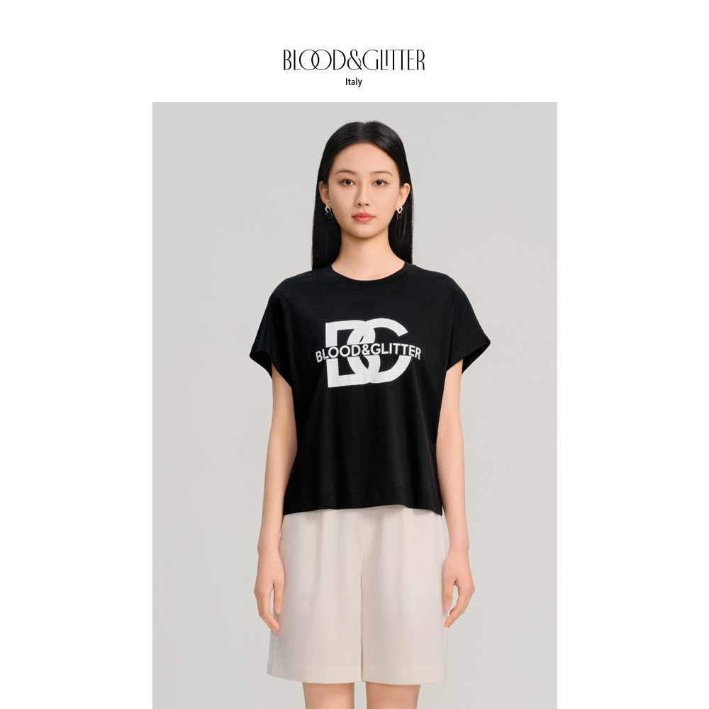 T恤女宽松上衣 BG徽标印花连肩短袖 blood&glitter 璞德格骊夏新款