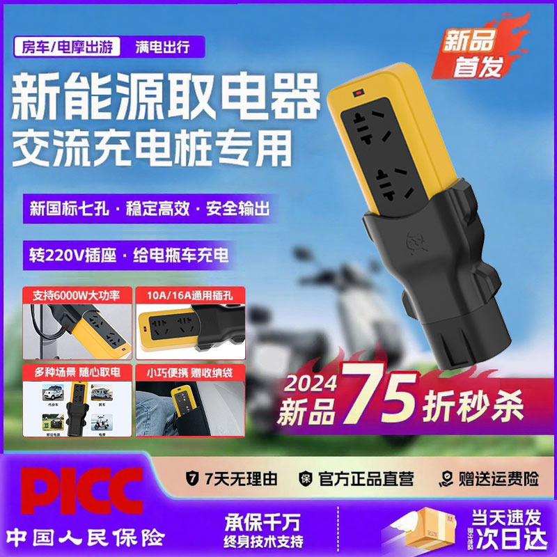 交流取电器插座充电桩转换接头电动车放电插头新能源汽车外转换器