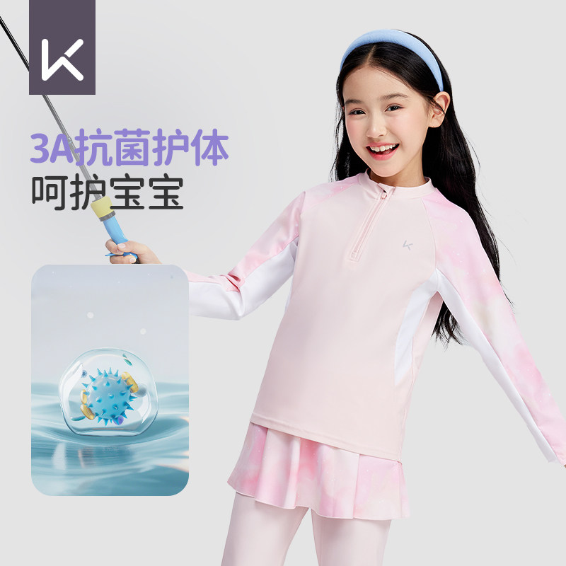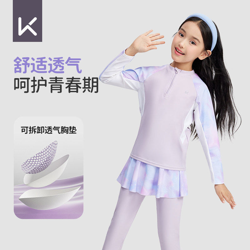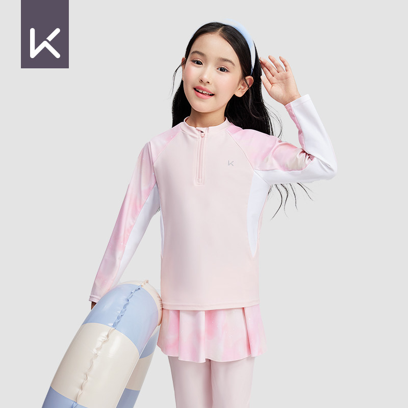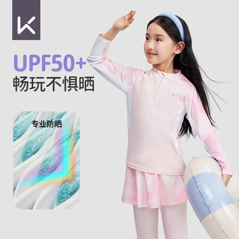 中大童防晒速干保守专业游泳装 Keep儿童泳衣女童2025新款 连体长袖