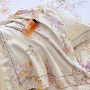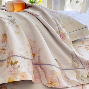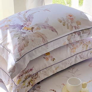 水星家纺全棉印花单件被套床单床笠100%纯棉对枕套中式 花鸟床品
