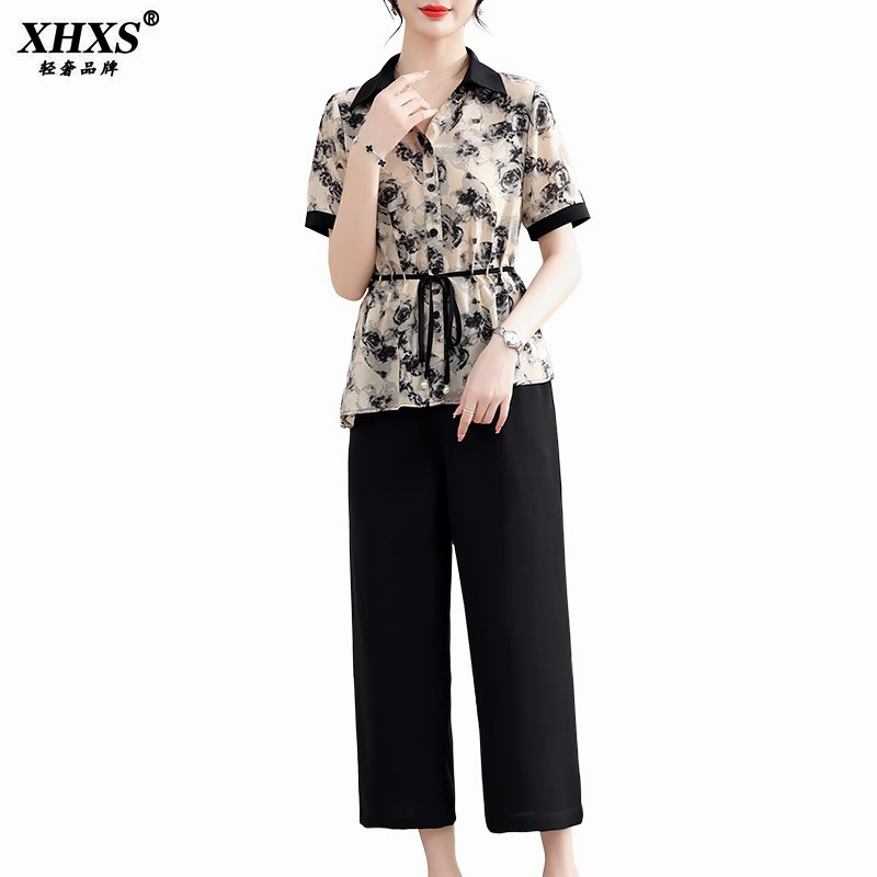 时尚 洋气2025新款 气质中老年女装 夏季 两件套 年轻妈妈夏装 短袖 套装