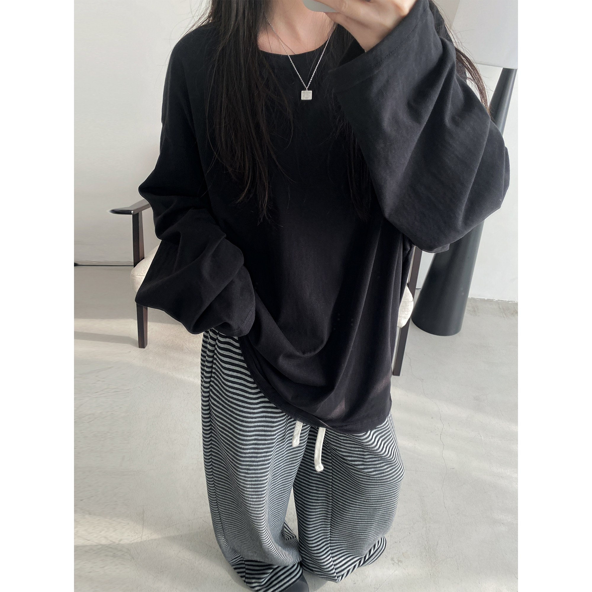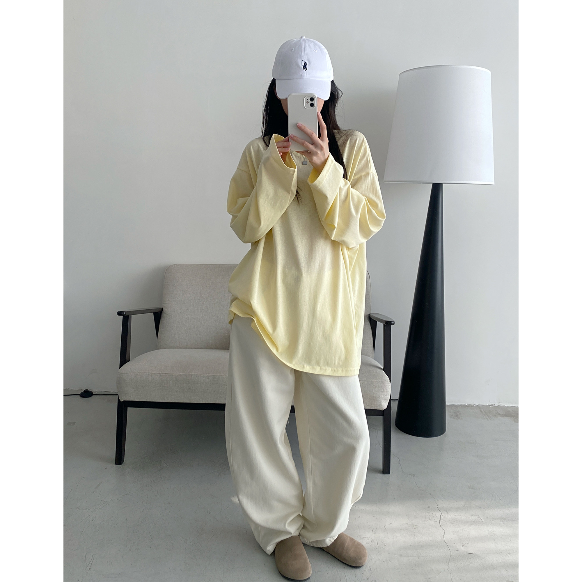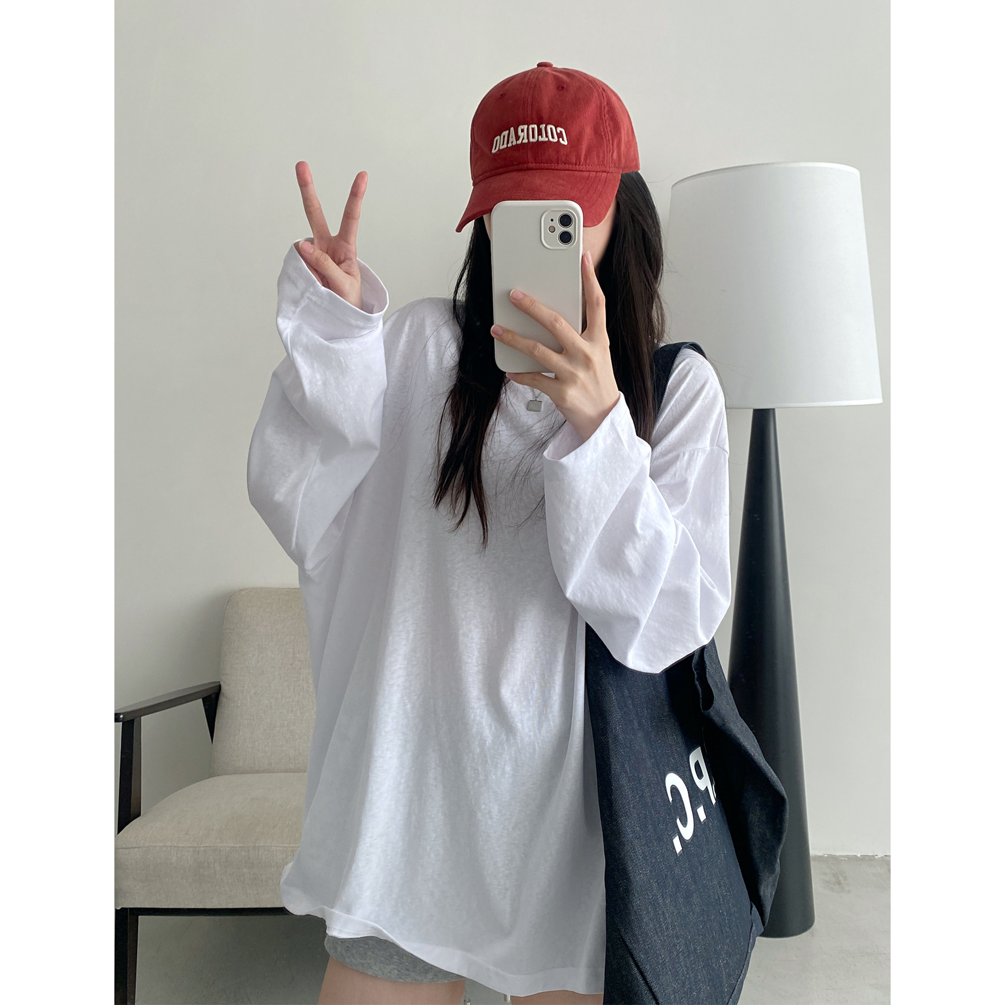 上衣女夏季 调性简约纯色大大T恤宽松遮臀显瘦长袖 必入款 sun柚