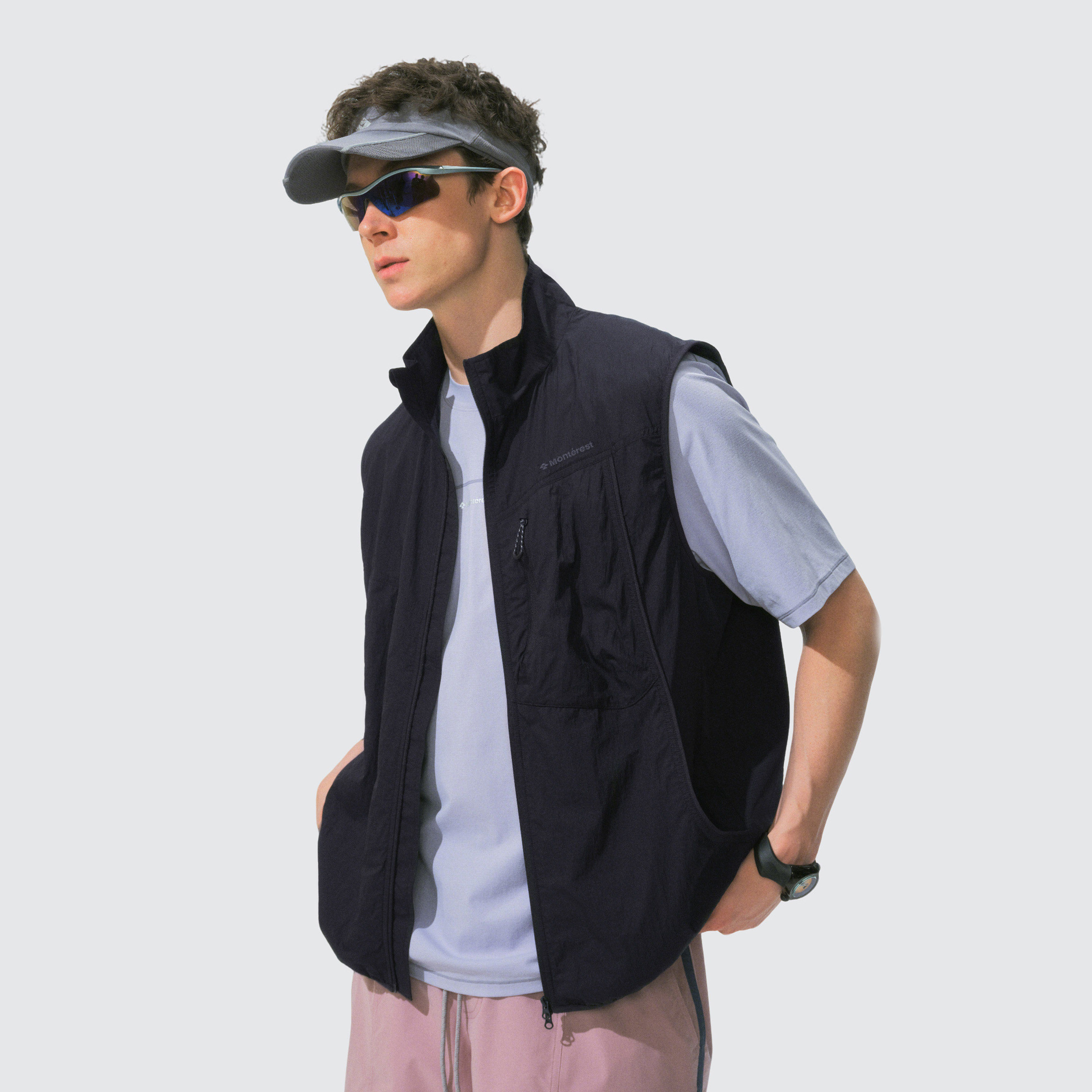 瞬时山野Monterest户外轻薄原纱防晒马夹防泼水宽松立领拼接马甲