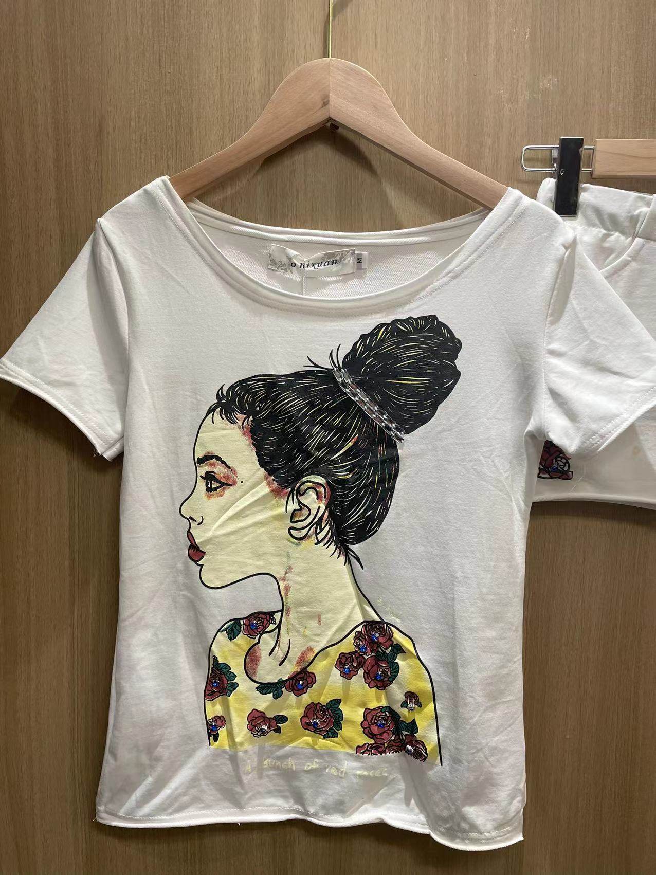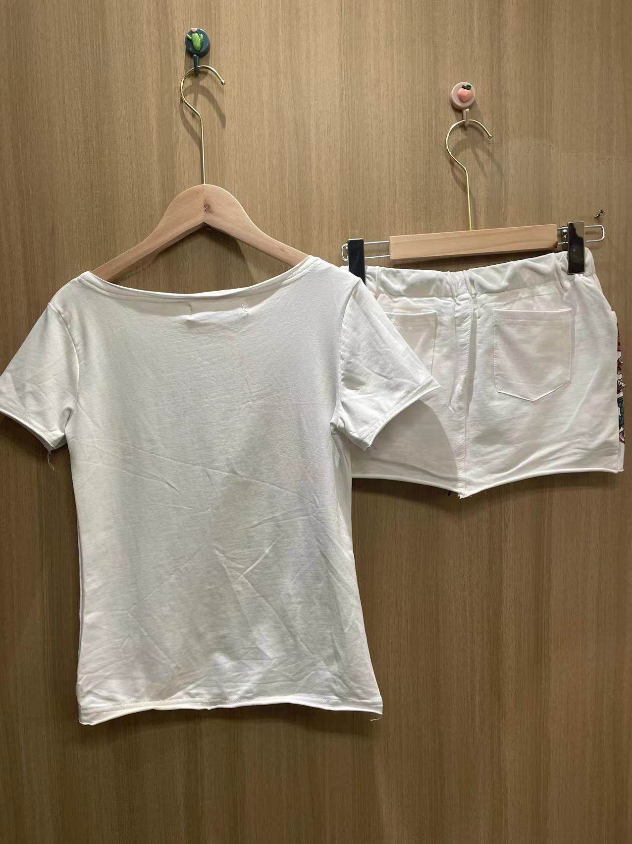女大码 2024夏季 套裙短袖 休闲运动套装 宽松圆领包臀两件套短裙 新款