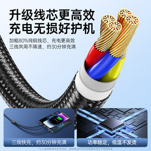 能适三合一数据线100W快充一拖三充电线6A手机充电器线三头适用华为小米苹果安卓tpyec闪充多头usb车载冲电线
