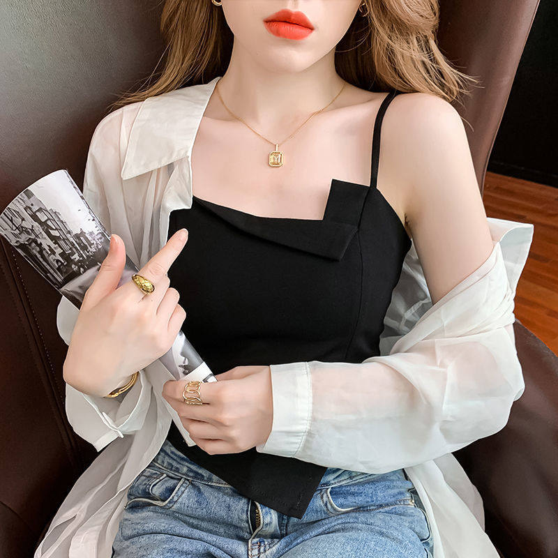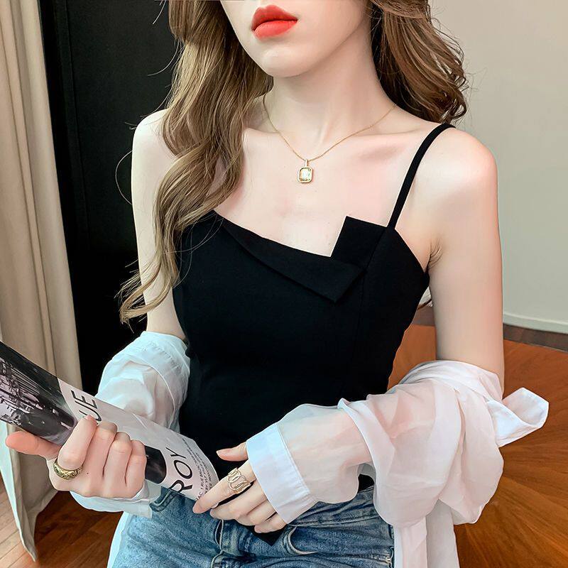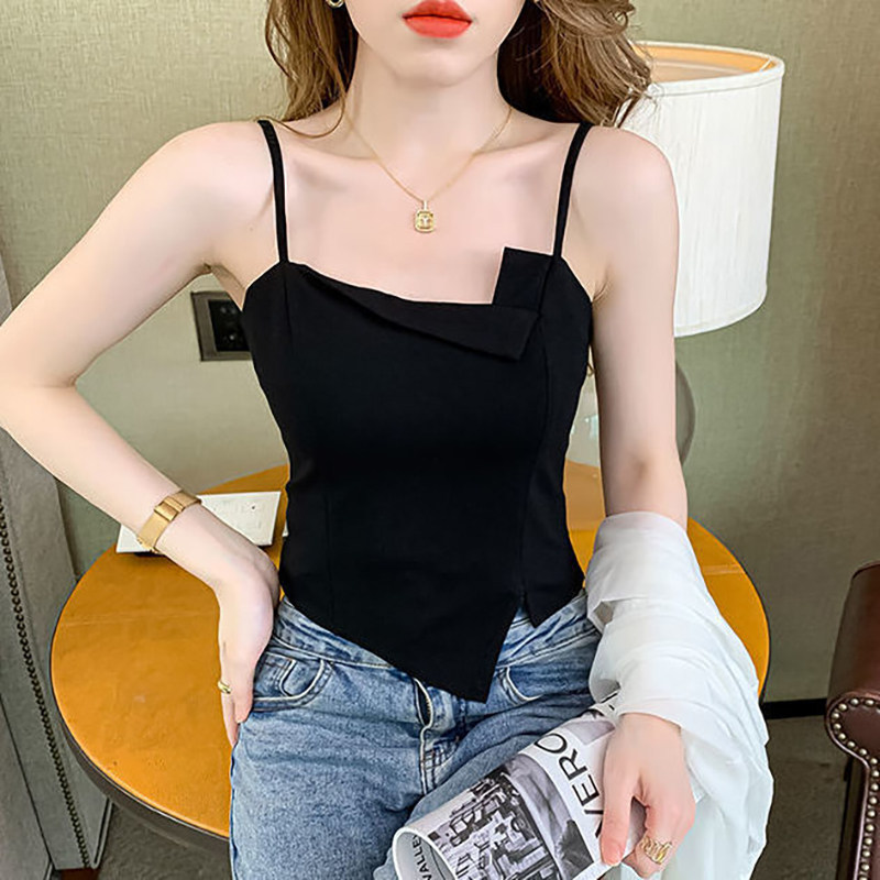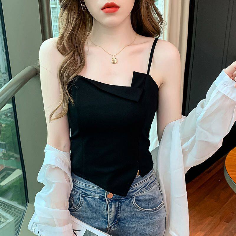 不规则百搭显瘦短款 吊带背心女2024夏新款 上衣 设计感小众无袖 韩版