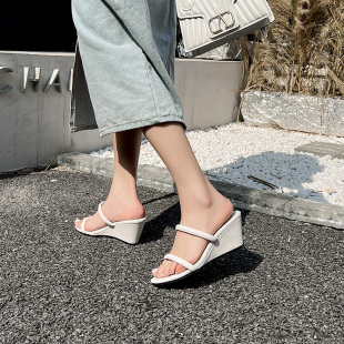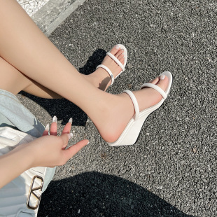 韩版 细带高跟鞋 简约一字带凉鞋 女夏外穿时尚 女坡跟凉拖鞋 2026新款