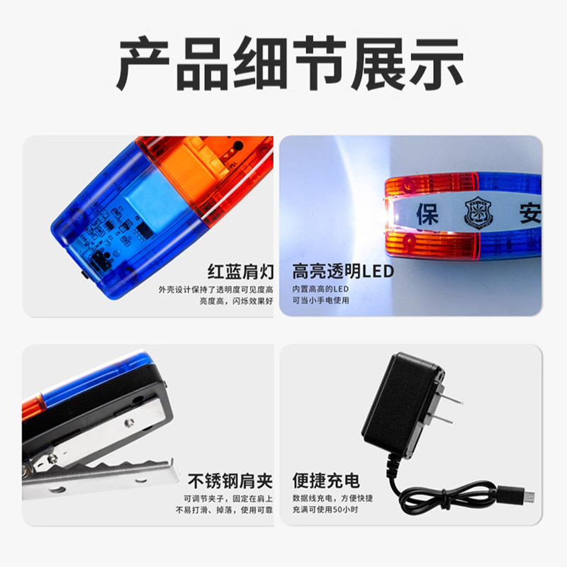 肩灯充电夜间闪光灯户外夜跑安全红蓝爆闪信号执勤保安巡逻肩闪灯
