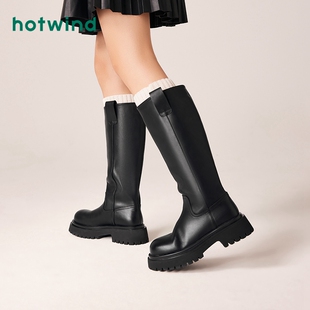 小个子高筒长靴圆头显瘦骑士靴休闲靴 女士时尚 热风冬季 新款