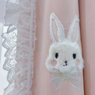 卧室遮光雪尼尔女孩粉色小兔窗帘公主房可爱温馨飘窗落地加厚新款