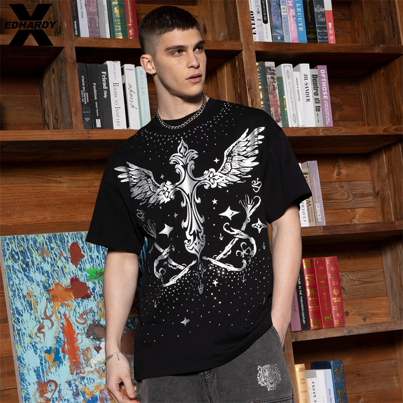 Hardy 十字架翅膀烫银烫钻印花圆领T恤衫 X2025新款 经典 潮 夏季
