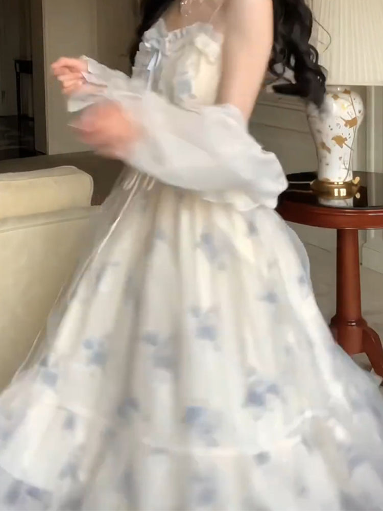 吊带碎花裙2025夏天显瘦露背性感连衣裙套装 复古浪漫收腰修身 长款