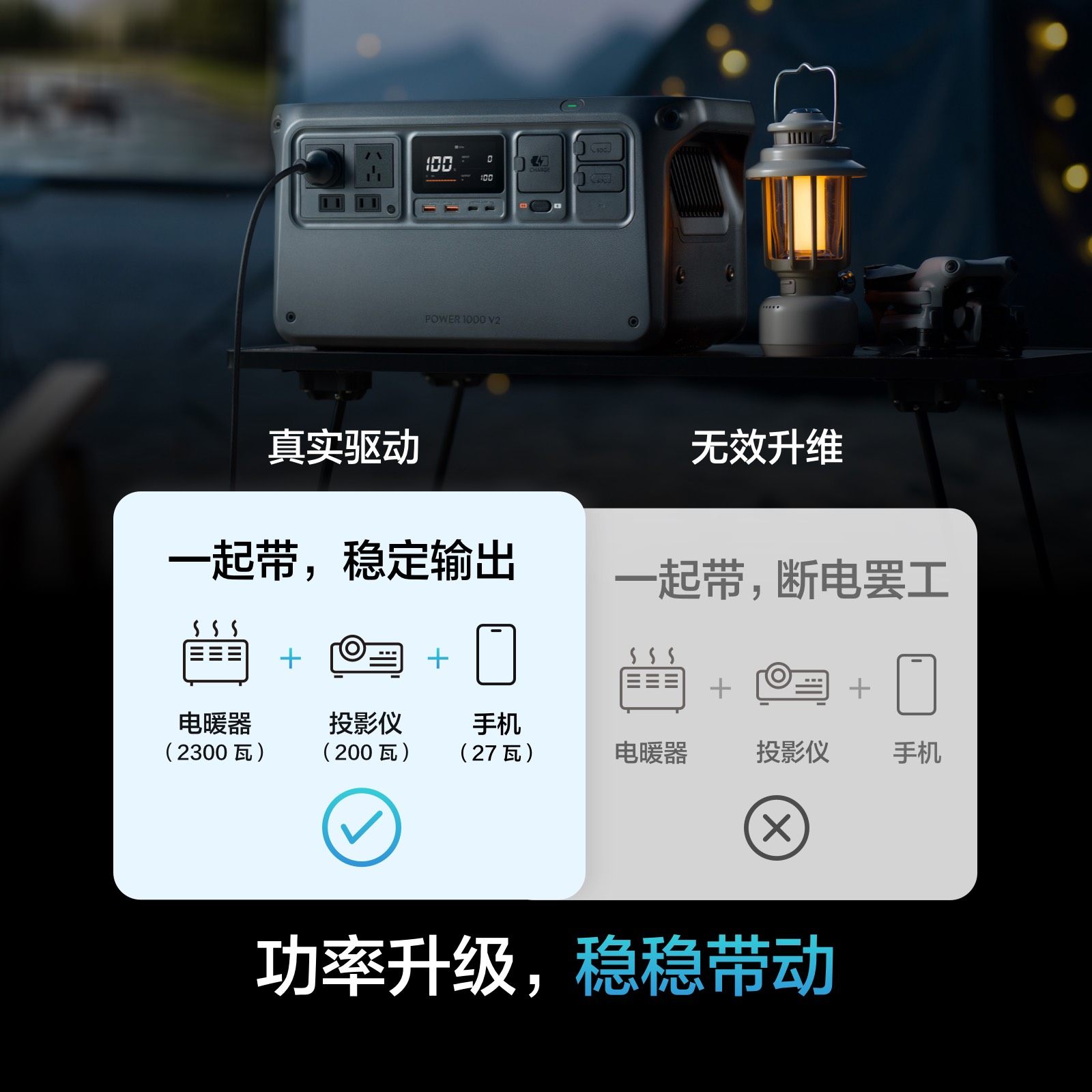 阿里自营 V2户外电源1度电220V 大疆DJI 1000 2600W瓦大功率移动电源便携家用备用车载露营自驾游 Power