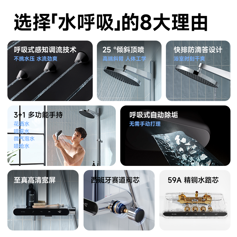 Imex水呼吸动态增压智能浴室卫浴淋浴花洒套装 上市 家用 新品