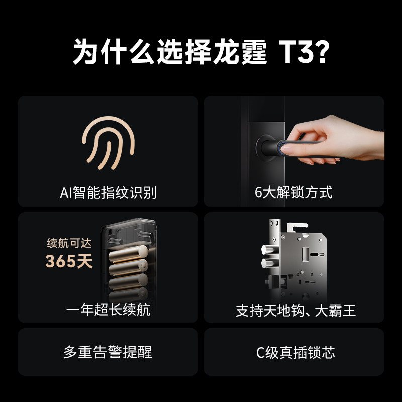 德施曼旗下龙霆T3密码 锁智能门锁指纹电子锁家用入户远程密码