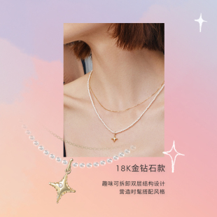 HEFANG何方珠宝星光气球珍珠项链18K金星星锁骨链轻奢生日礼物DX
