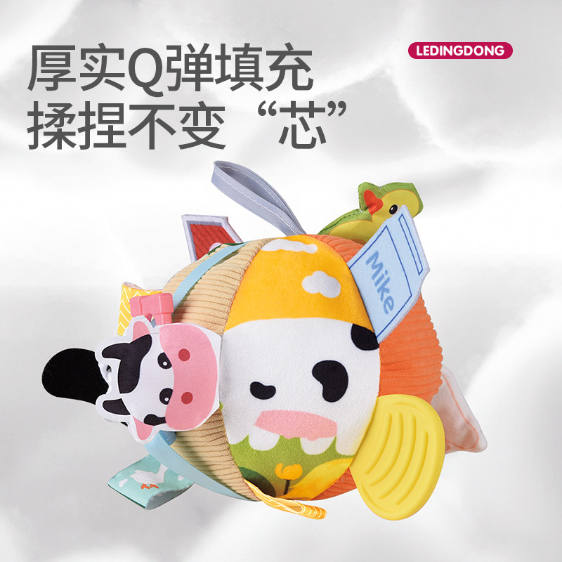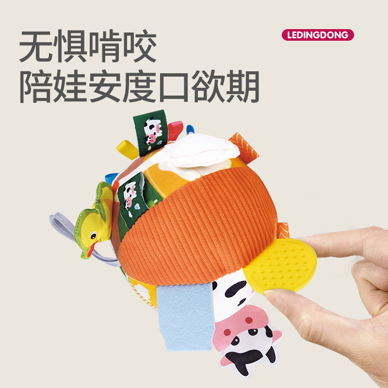 科巢曼哈顿手抓球婴儿玩具硅胶可咬牙胶小宝宝3到6个月摇铃0一1岁