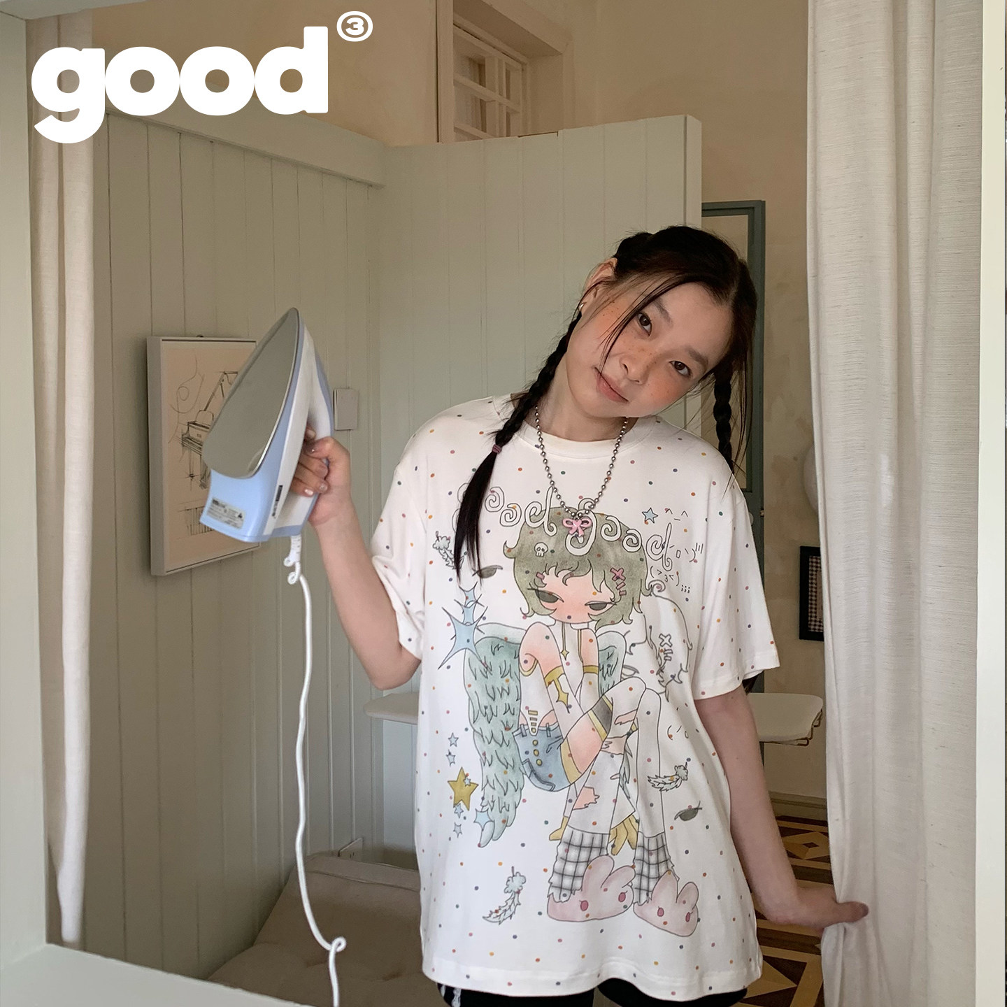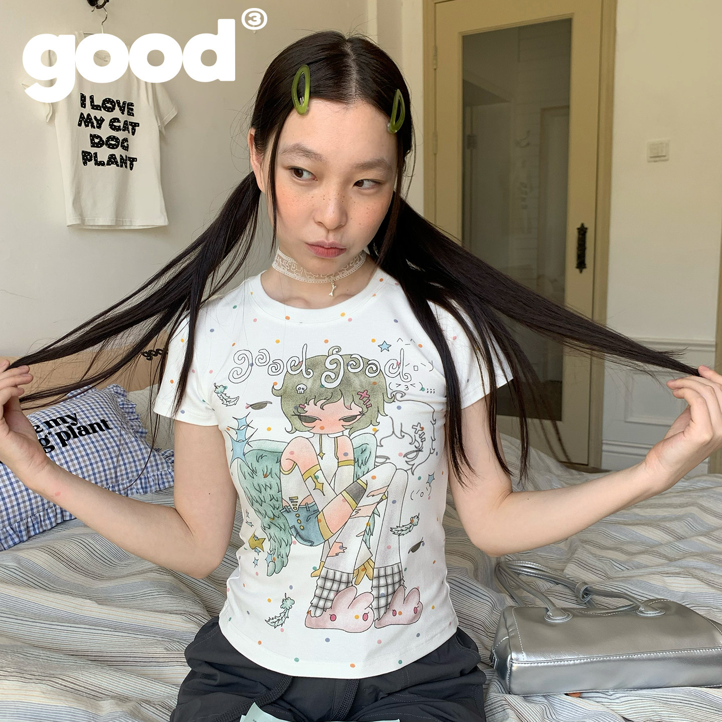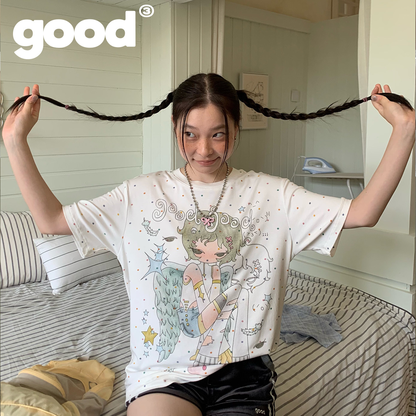 美好商店MeihaoStore糖豆波点翅膀情绪女孩轻亚短袖 T恤