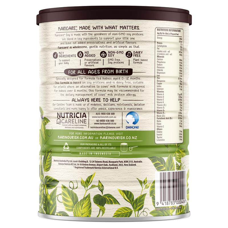 新西兰Karicare可瑞康豆奶粉植物蛋白900g婴幼儿无乳糖低敏配方奶