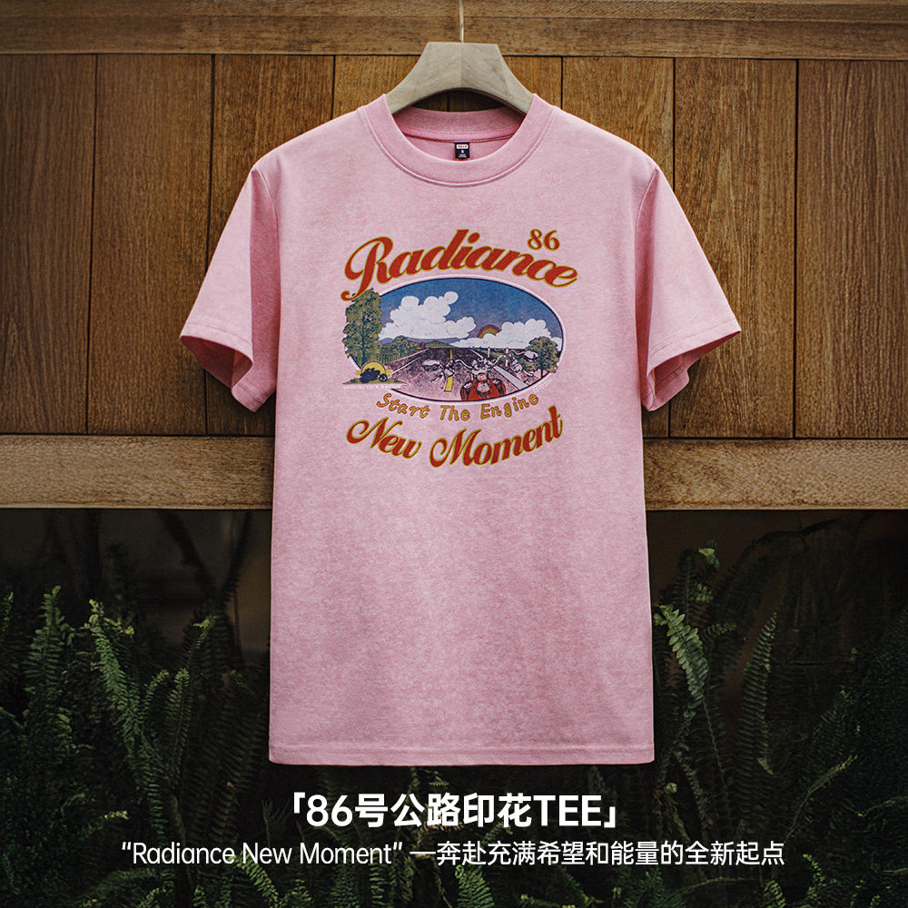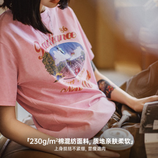 马登夏日仿蜡染粉色印花短袖 复古机车慵懒显瘦遮肉落肩T恤女 美式