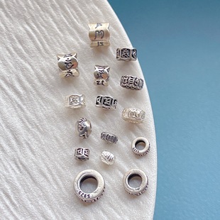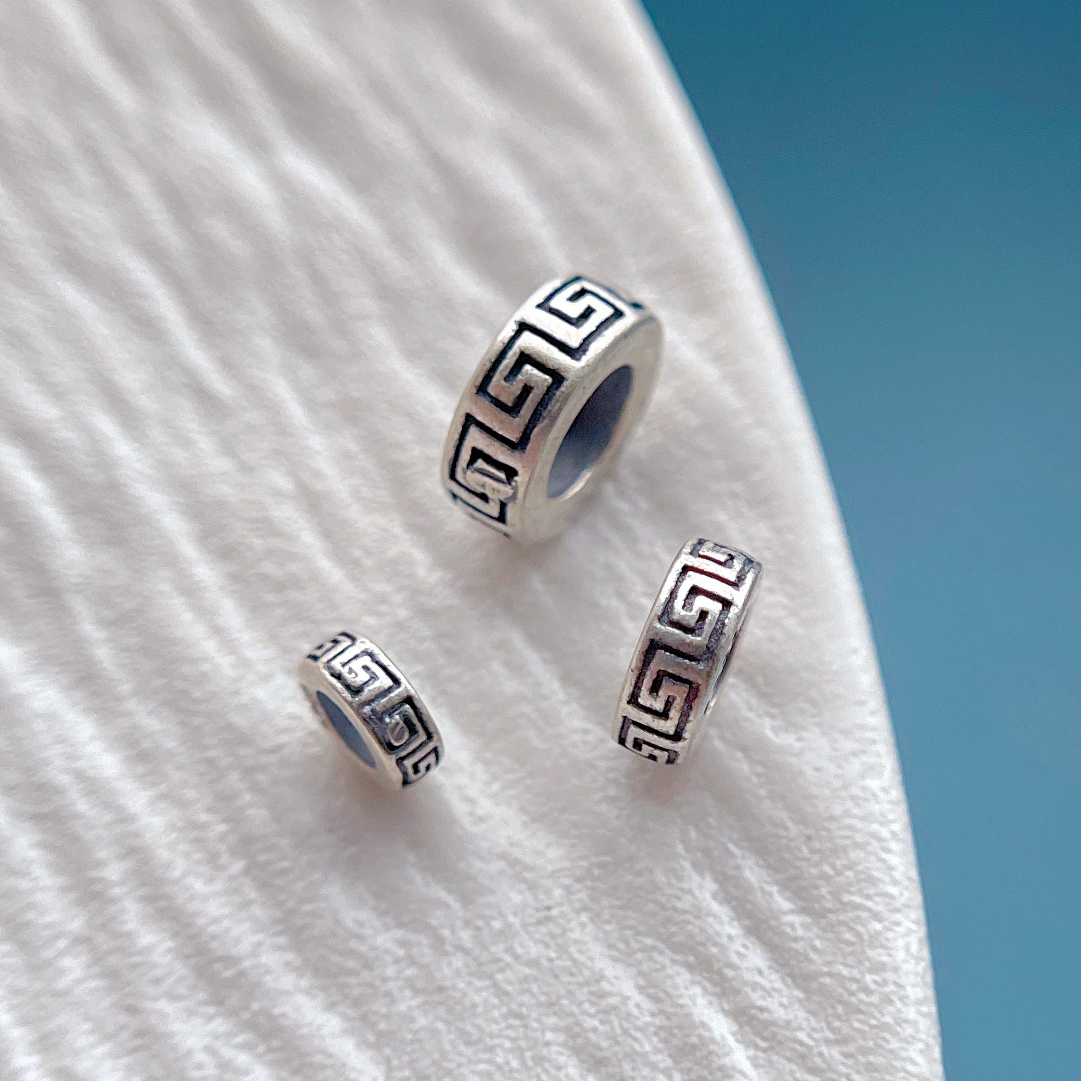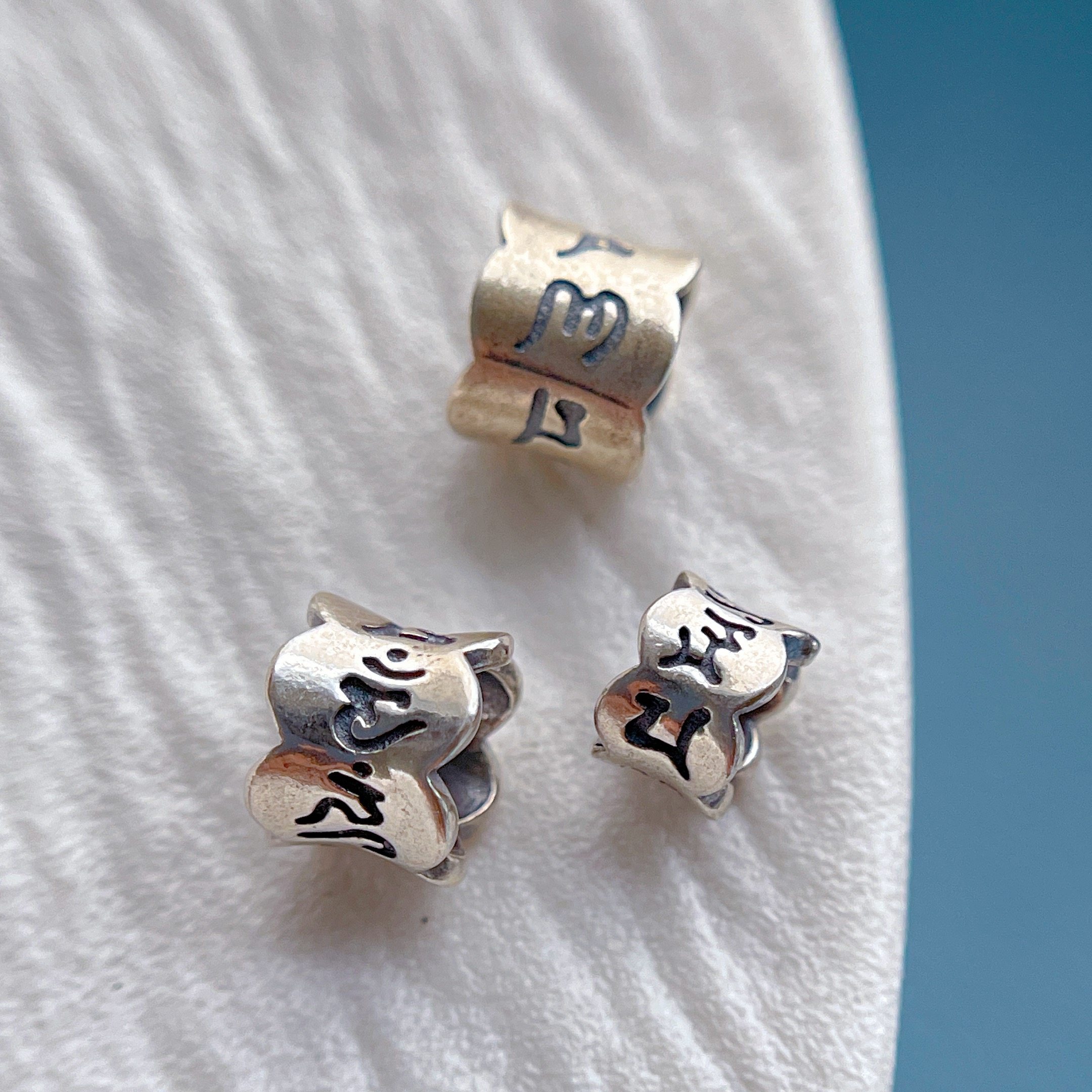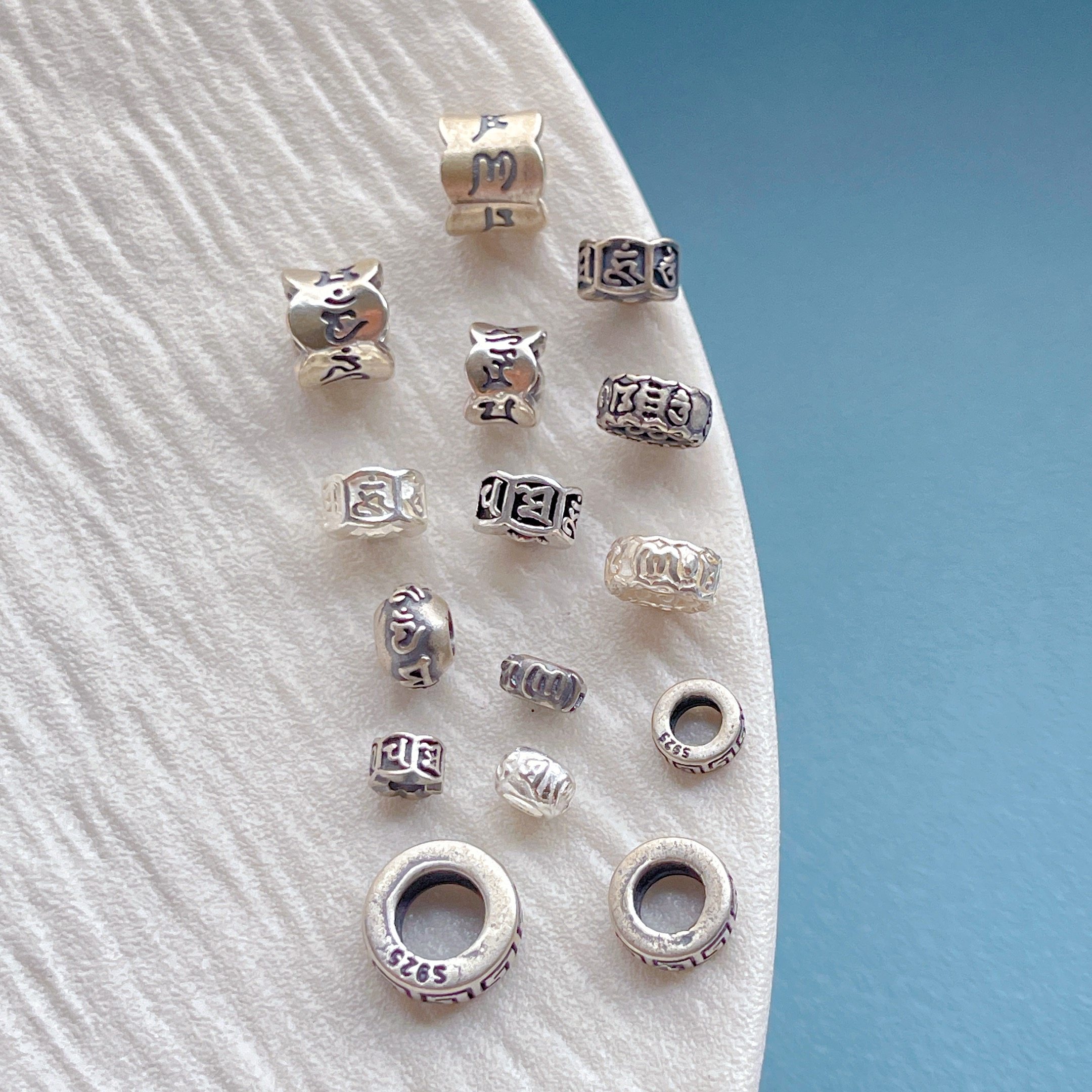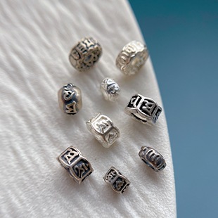 925纯银饰配件六字真言回纹隔珠隔片垫片桶珠腰珠diy手串项链配饰
