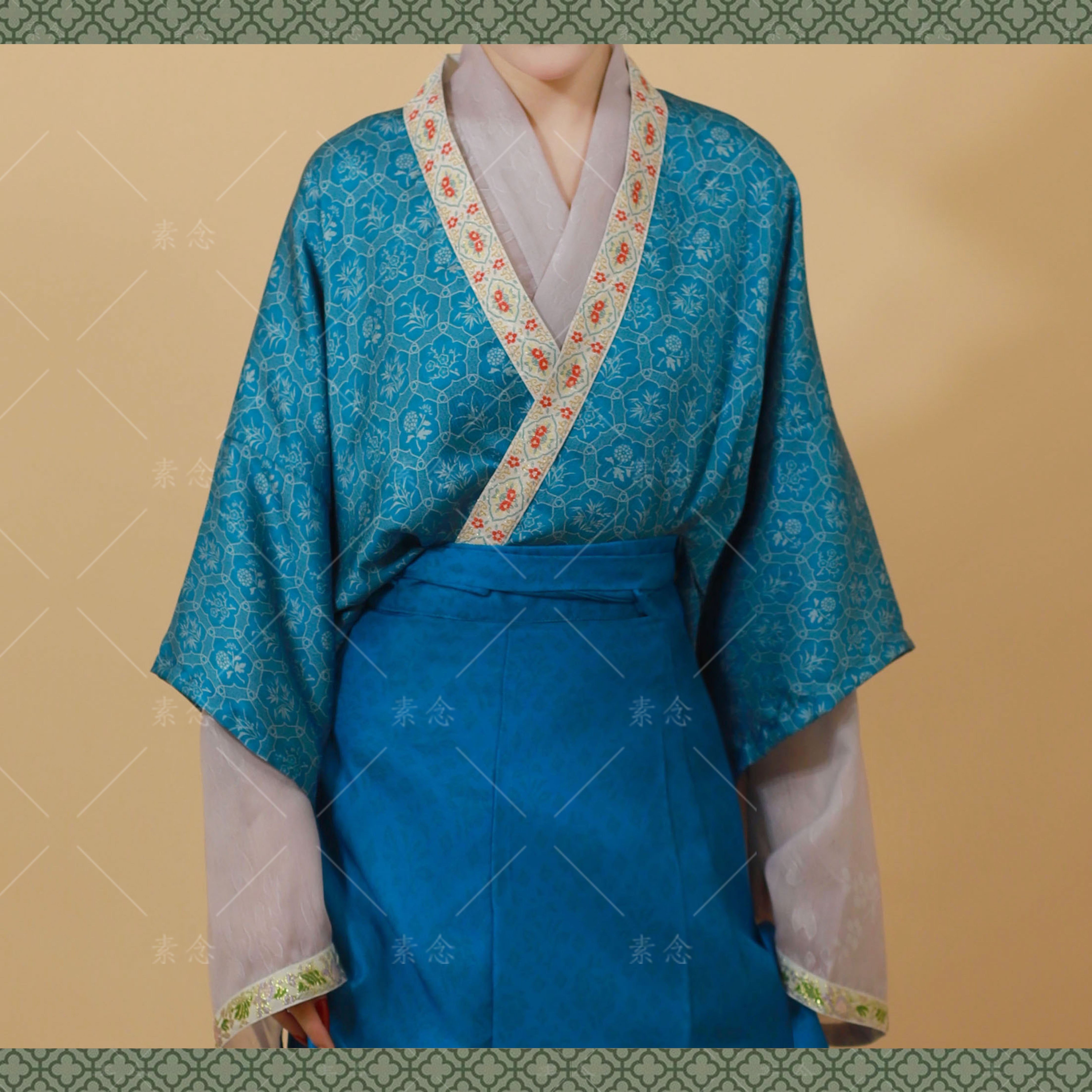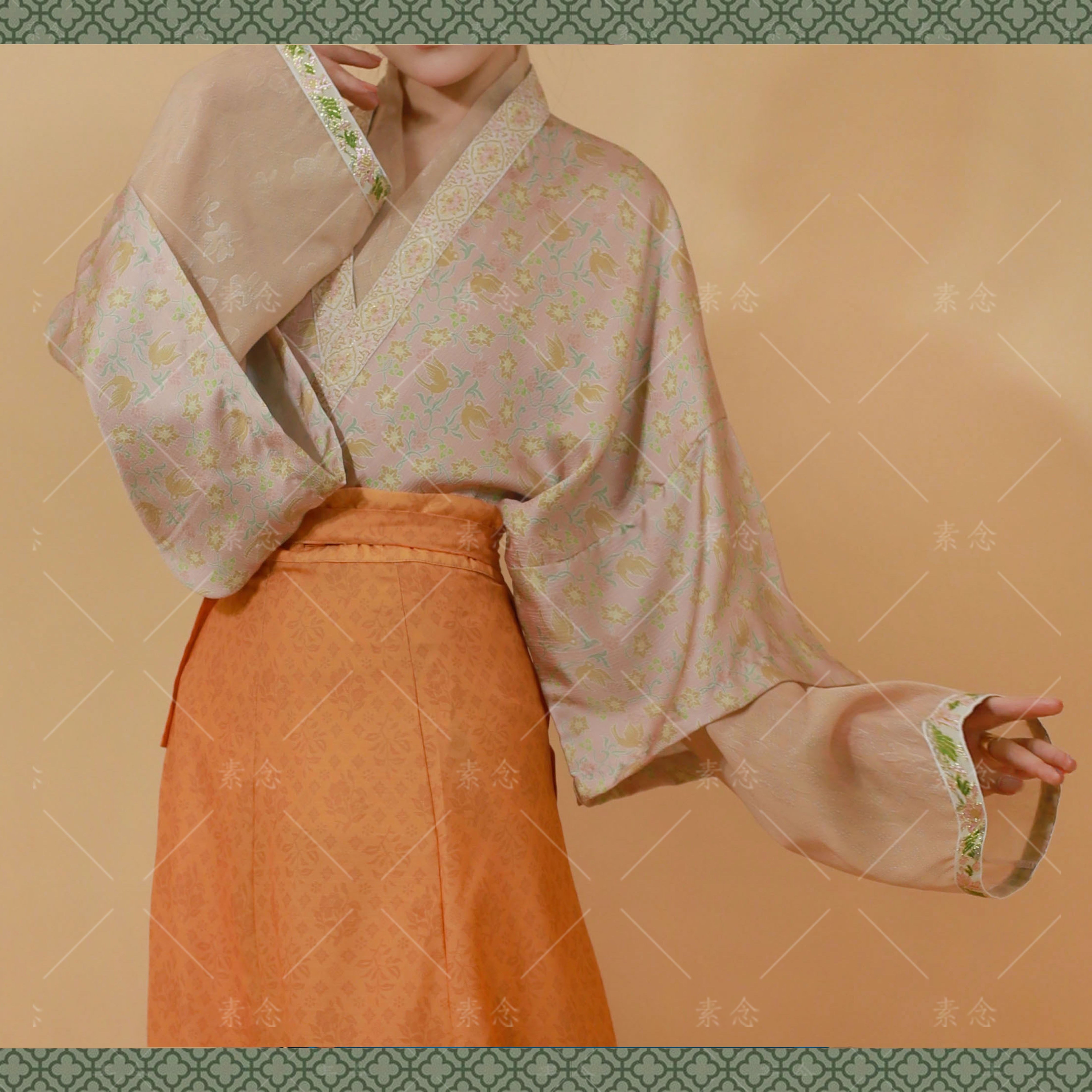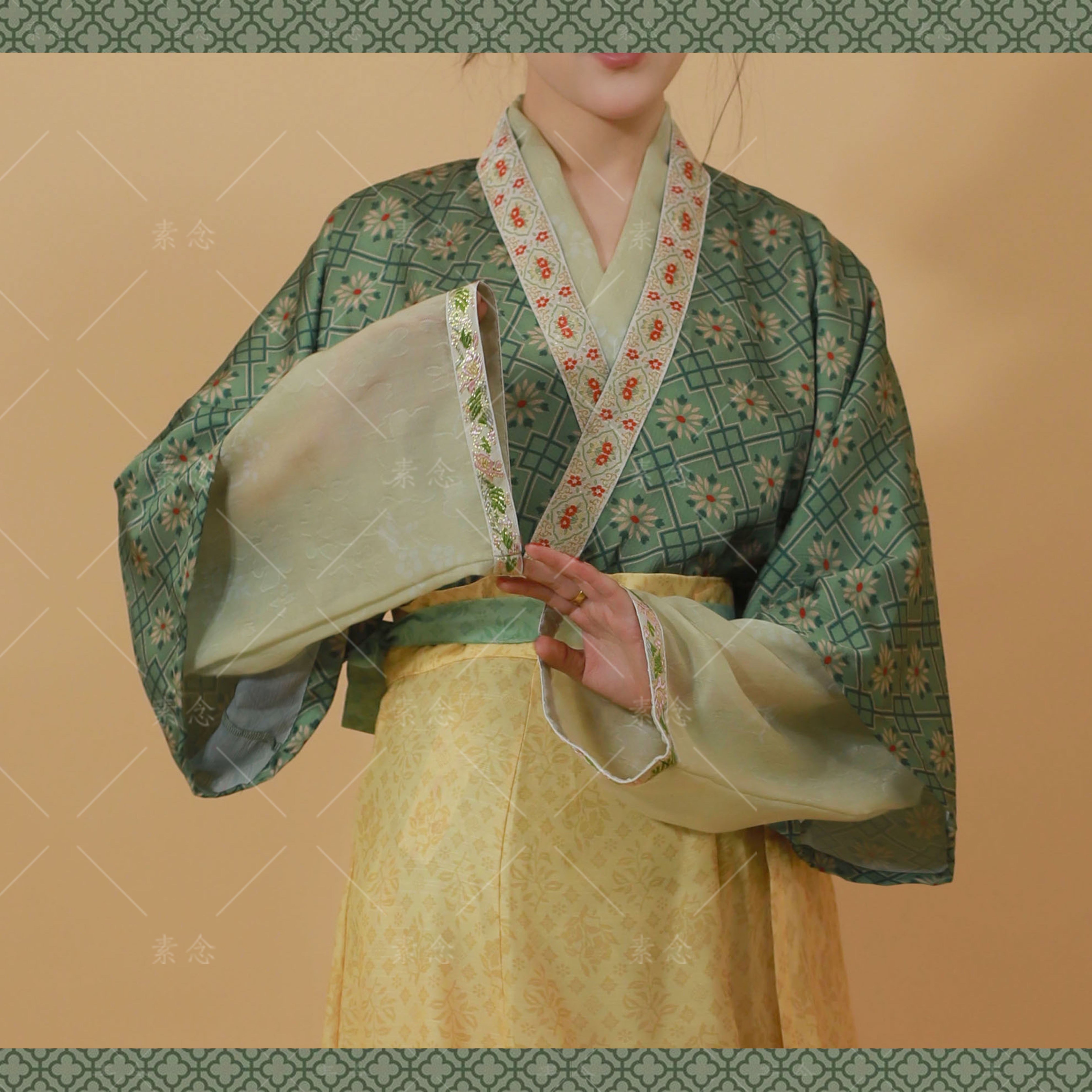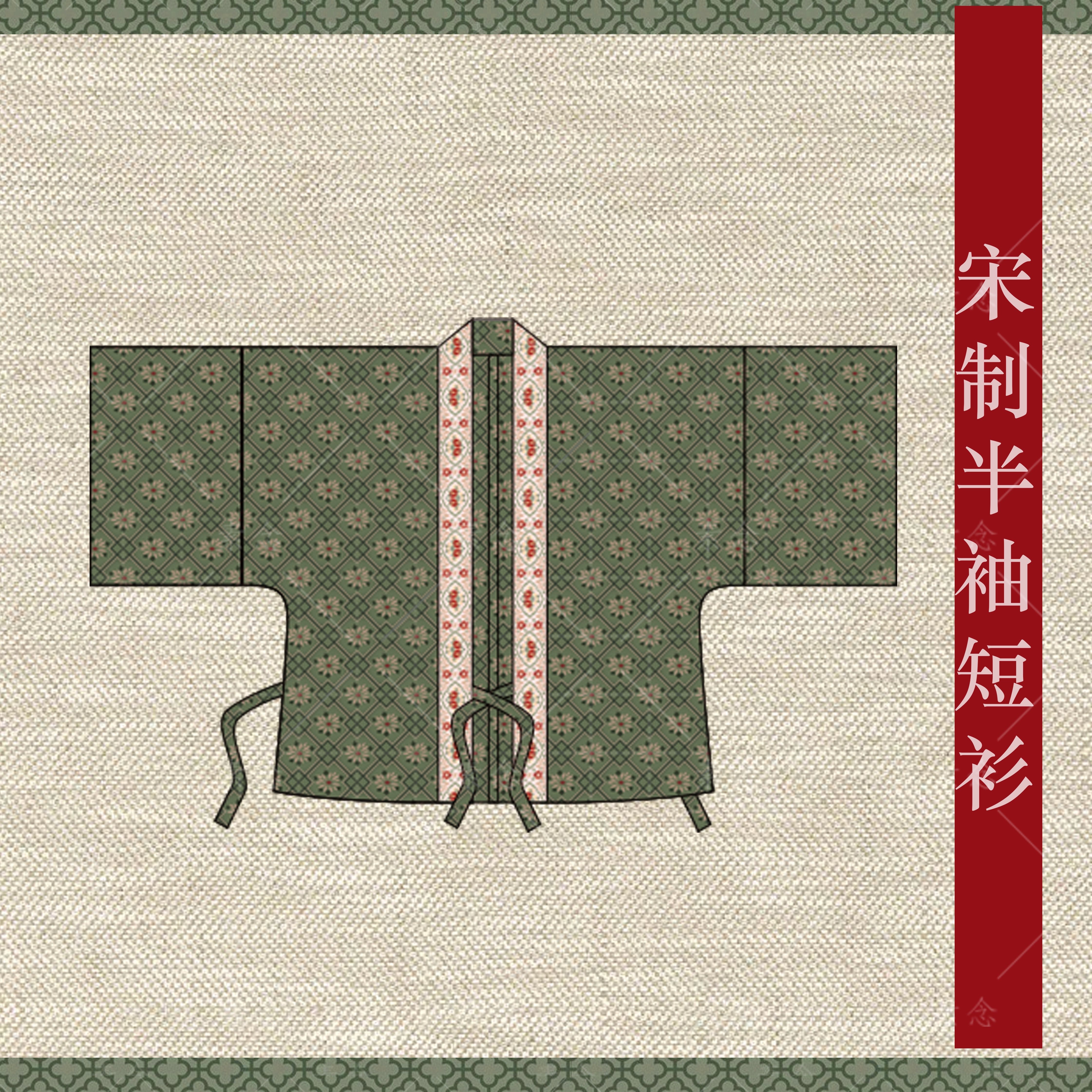 素念原创设计汉服宋制半袖 四色复原印花四条绑带b 短衫