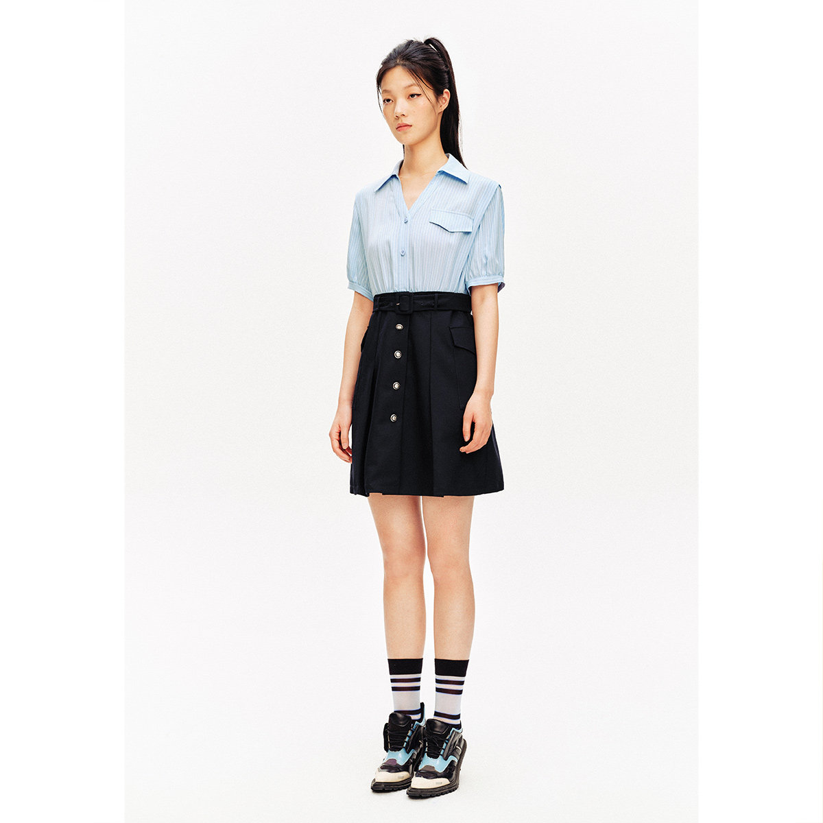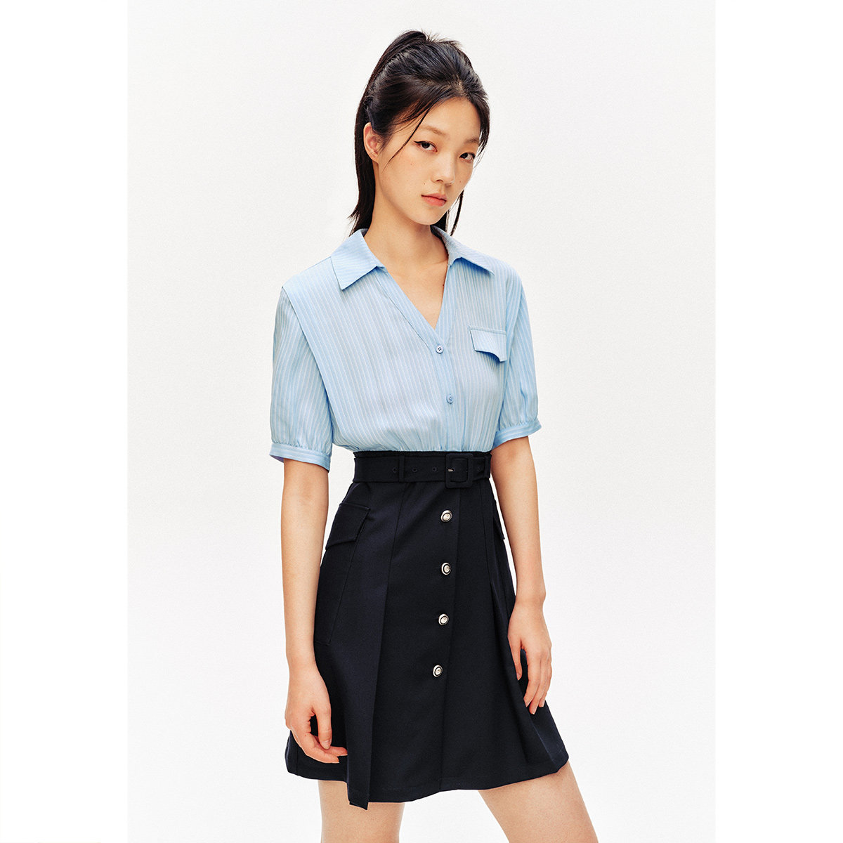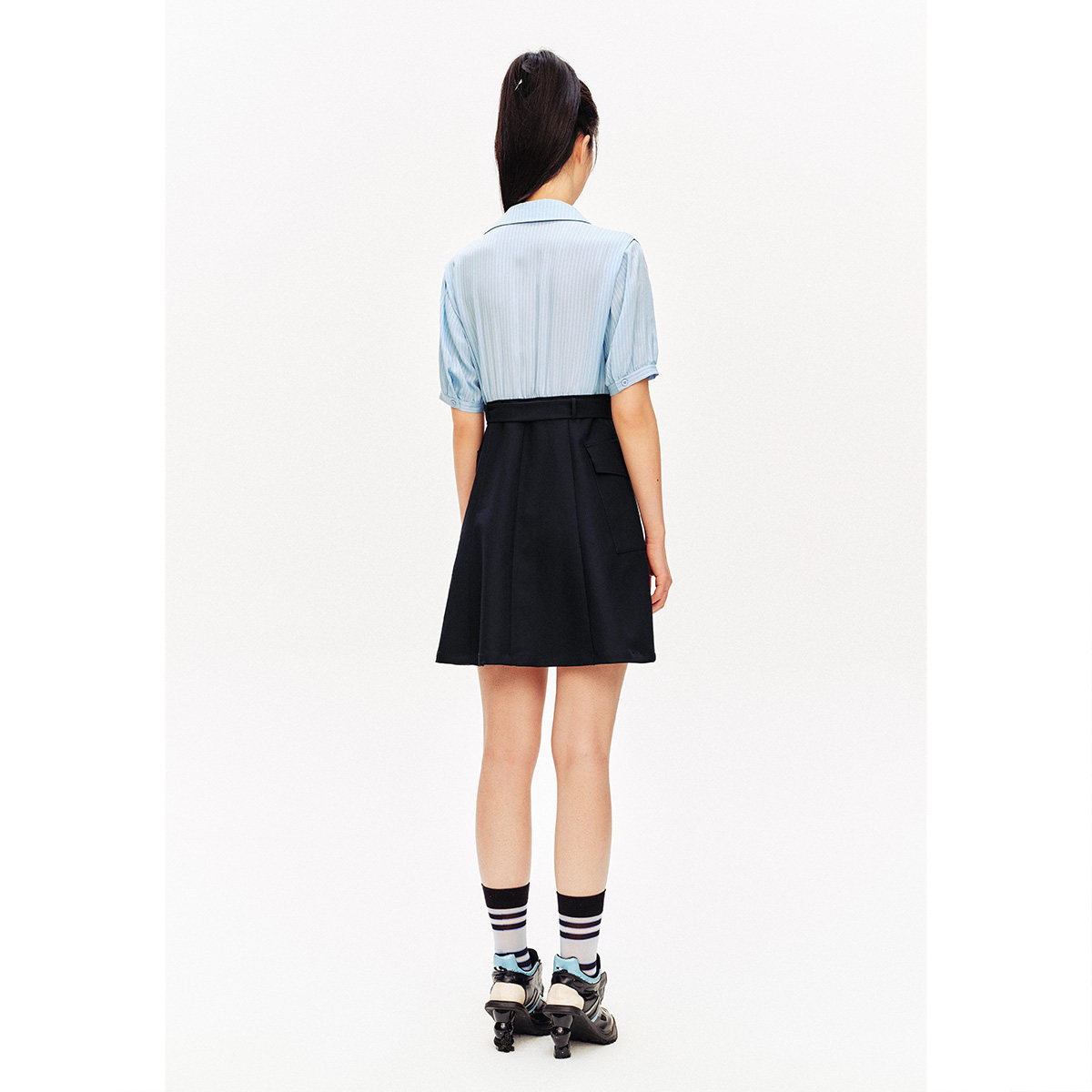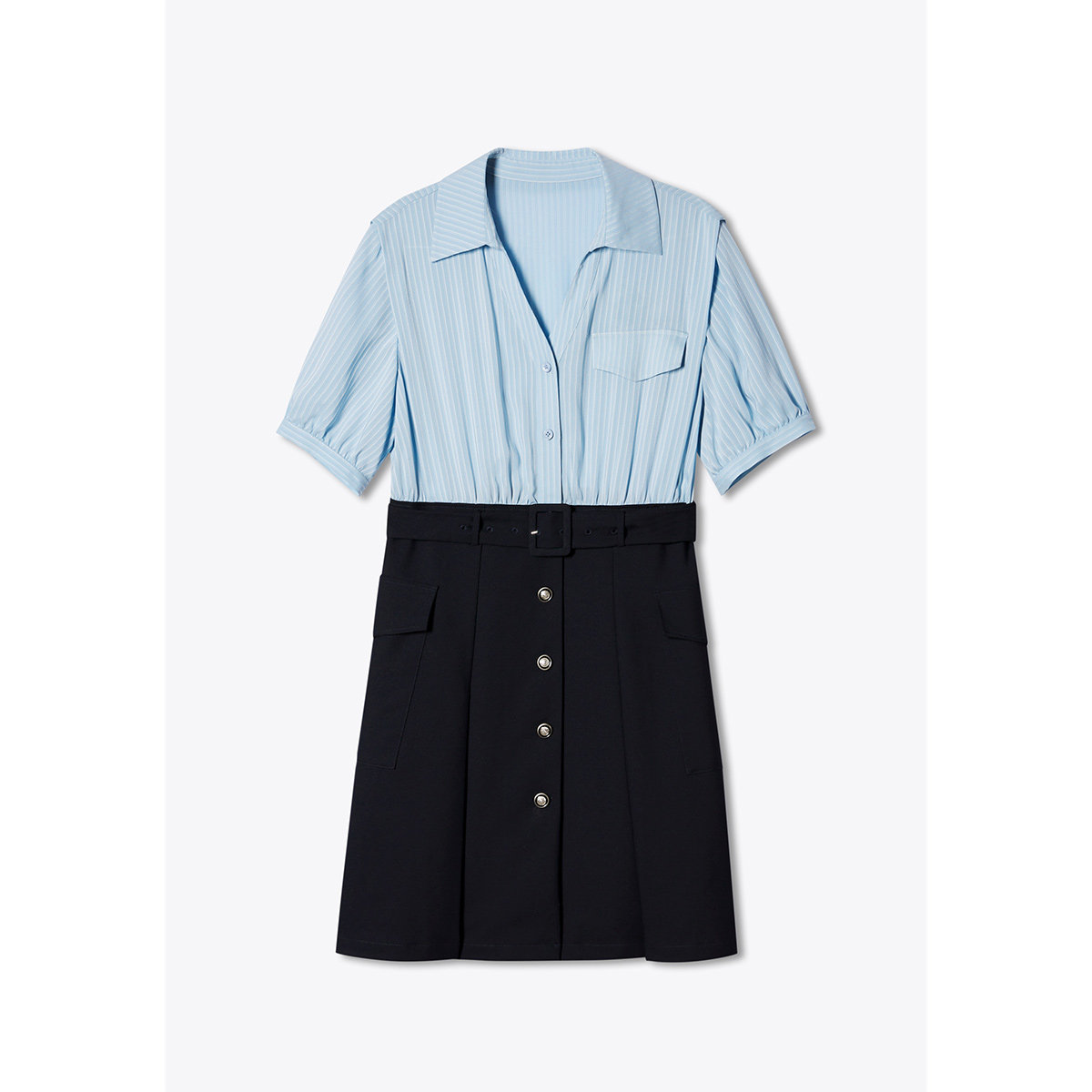 假两件连衣裙 诗篇专选夏环保条纹翻领衬衫 奥莱4折