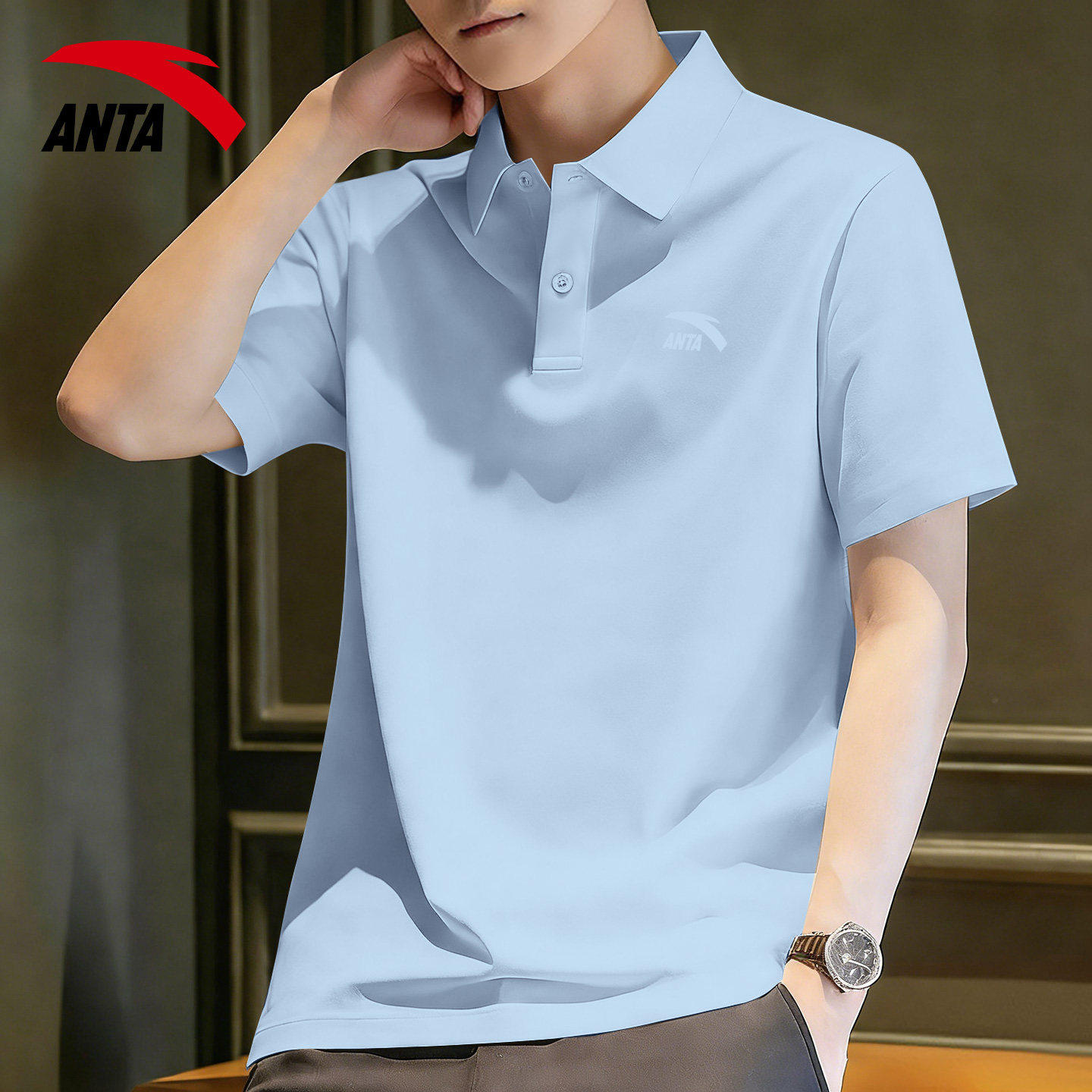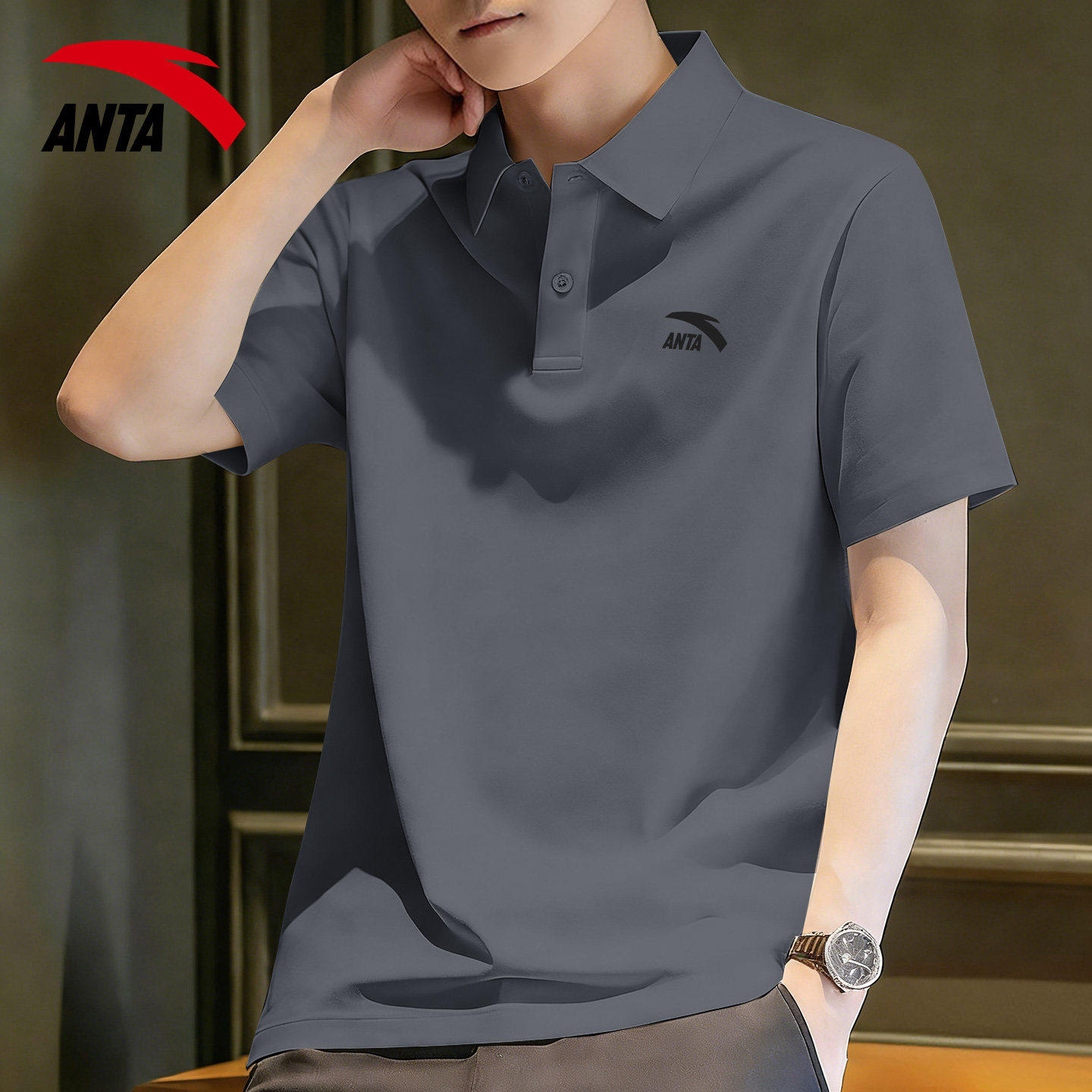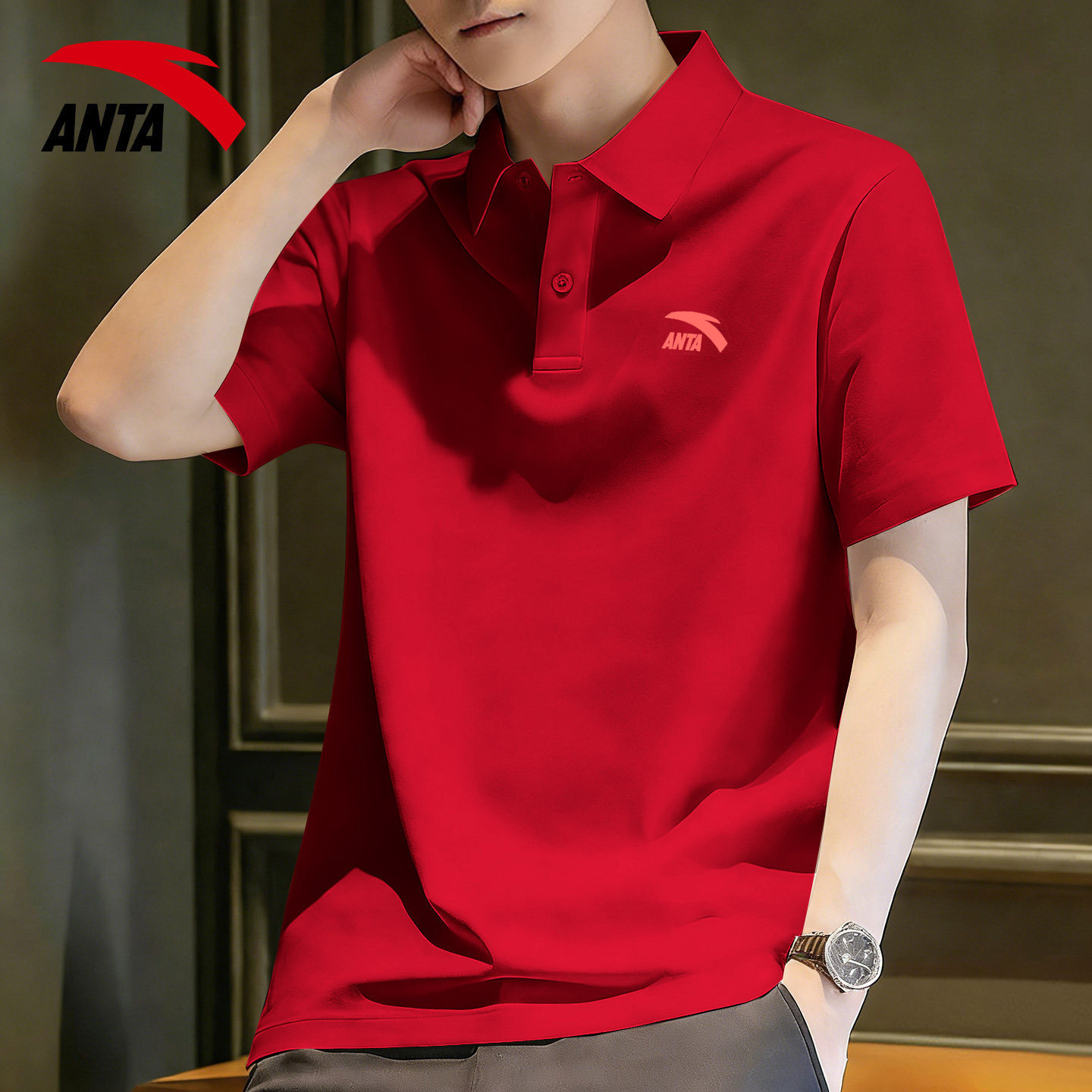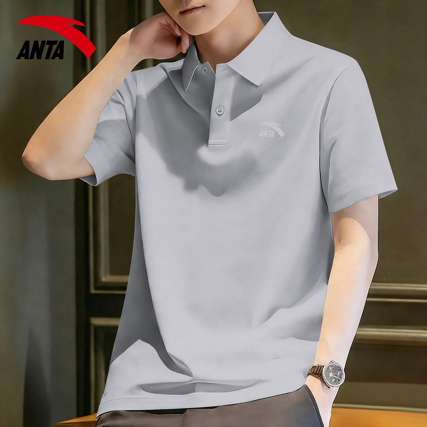 宽松大码 安踏翻领短袖 薄款 男夏季 T恤透气纯色运动休闲上衣 polo衫