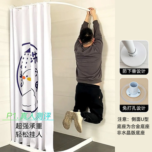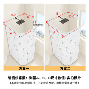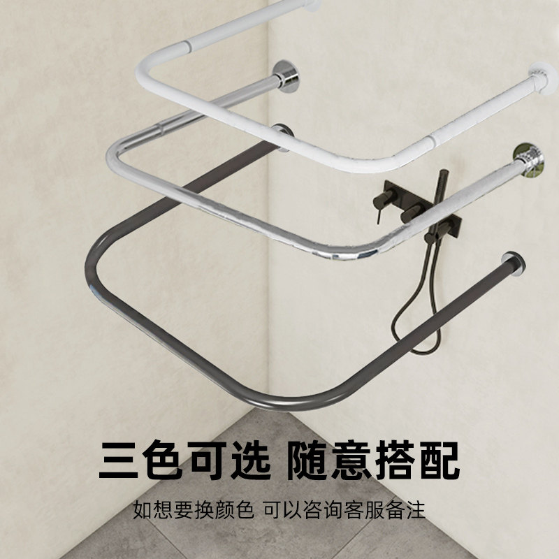 定制异型浴帘套装 免打孔U形伸缩浴帘杆浴室挂帘干湿分离304不锈钢