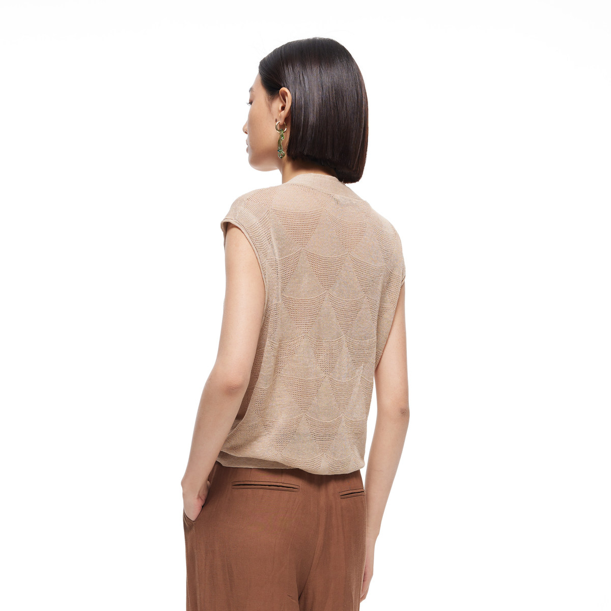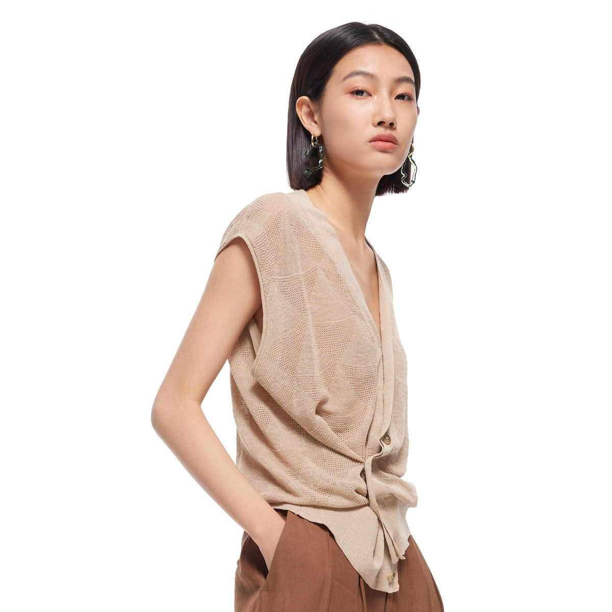 MESUX米岫新品 马甲MMMUE202 女V领两穿提花针织开衫