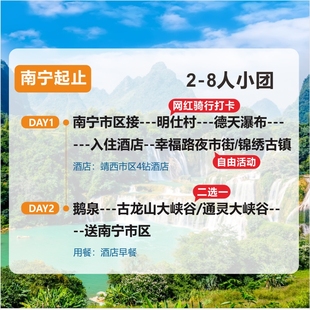 广西南宁崇左2日旅游德天瀑布明仕田园通灵峡谷两日纯玩跟团游