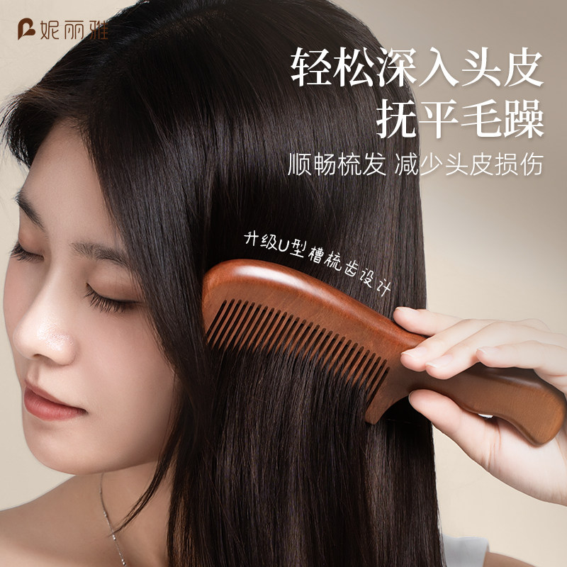 妮丽雅正品 桃木梳子男女士专用防静电长发直发家用檀木梳