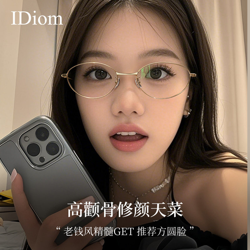 超轻猫眼老钱风眼镜框近视女高级感度数可配纯钛backbone金属镜框