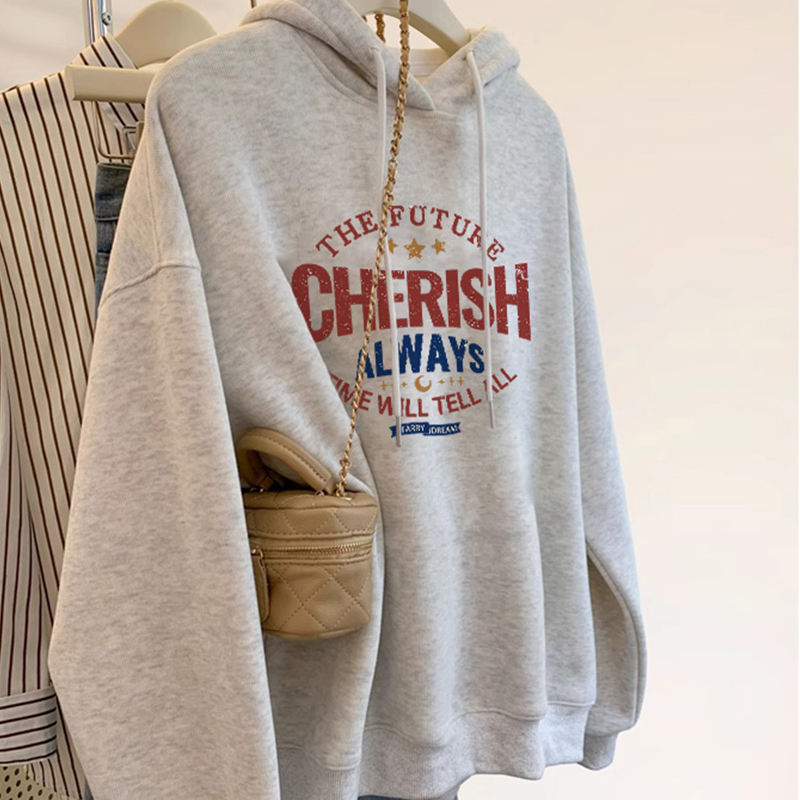 圆领连帽卫衣外套 宽松薄款 KYV真维斯灰色卫衣女2025新款 春秋美式