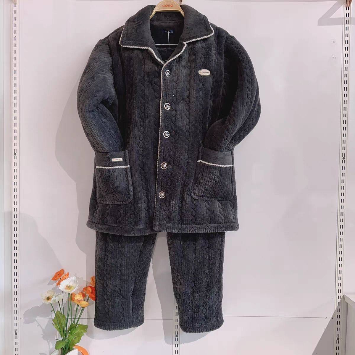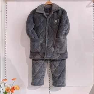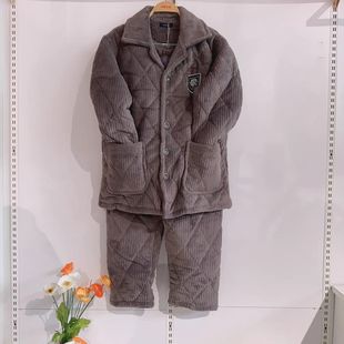 冬款 睡衣男士 家居服套装 三层加厚保暖加绒夹棉袄珊瑚绒新款 秋冬季