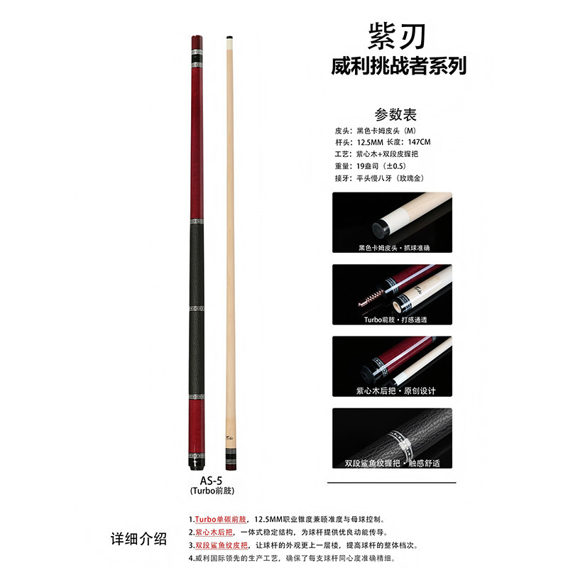 fury挑战者威利紫刃Turbo前肢九球美式 黑8球杆 台球杆血刃黑刃中式